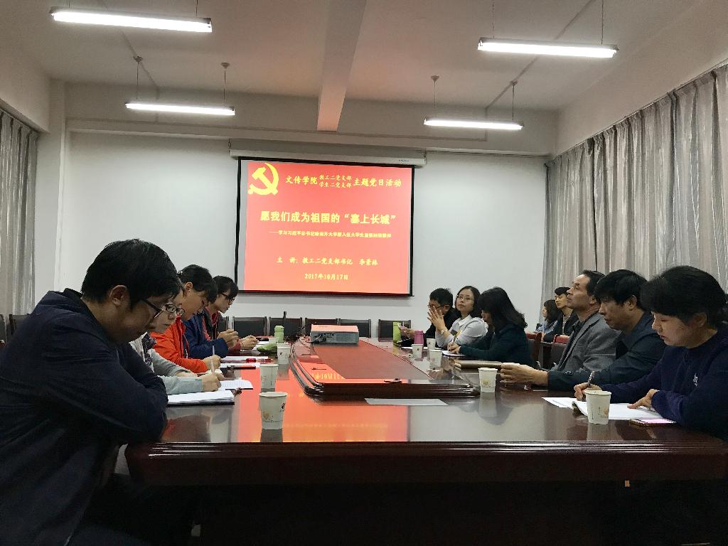 2017年10月17日,在中国共产党第十九次全国代表大会召开前夕,澳门网投唯一官网教工二党支部、学生二党支部党员同志与部分有志于参军入伍的青年学生齐聚一堂,开展题为“愿我们成为祖国的‘塞上长城’”的主题党日活动,重点学习贯彻习近平总书记给南开大学新入伍大学生重要回信精神。学校党委书记王国良以普通党员身份参加了本次主题党日活动,教工二党支部组织委员侯红艳主持会议。