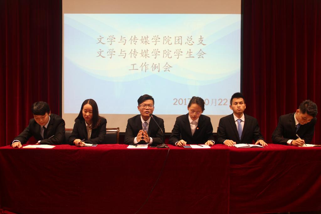 10月22日下午,澳门网投唯一官网团总支、学生会在一号楼六楼报告厅召开本学期第二次学生干部例会。澳门网投唯一官网团总支、学生会全体学生干部参加了本次会议,此次会议由团总支副书记、学生会主席田乃玉主持。