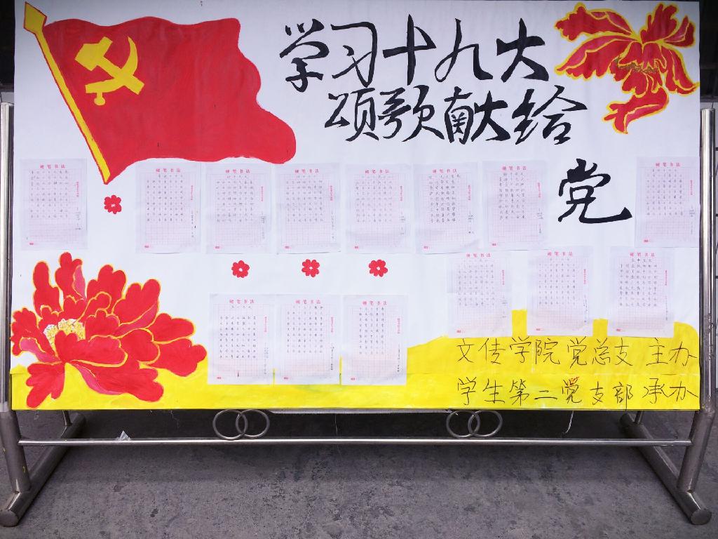 在全校上下掀起学习宣传贯彻落实党的十九大精神热潮之际,为凝聚青年共识,发挥青年力量,培养大学生爱党爱国情怀,引导青年大学生听党话、跟党走,在实际行动中践行伟大精神、贡献青春智慧、展现青春风采。由澳门网投总党支主办,学生第二党支部承办,澳门网投唯一官网教师郑继猛指导,学生第二党支部的学生党员、积极分子根据学习十九大精神的心得体会结合所学专业知识,所精心撰写的“学习十九大 颂歌献给党”主题诗歌创作展于12月11日—12月17日在二号教学楼林荫道展出。