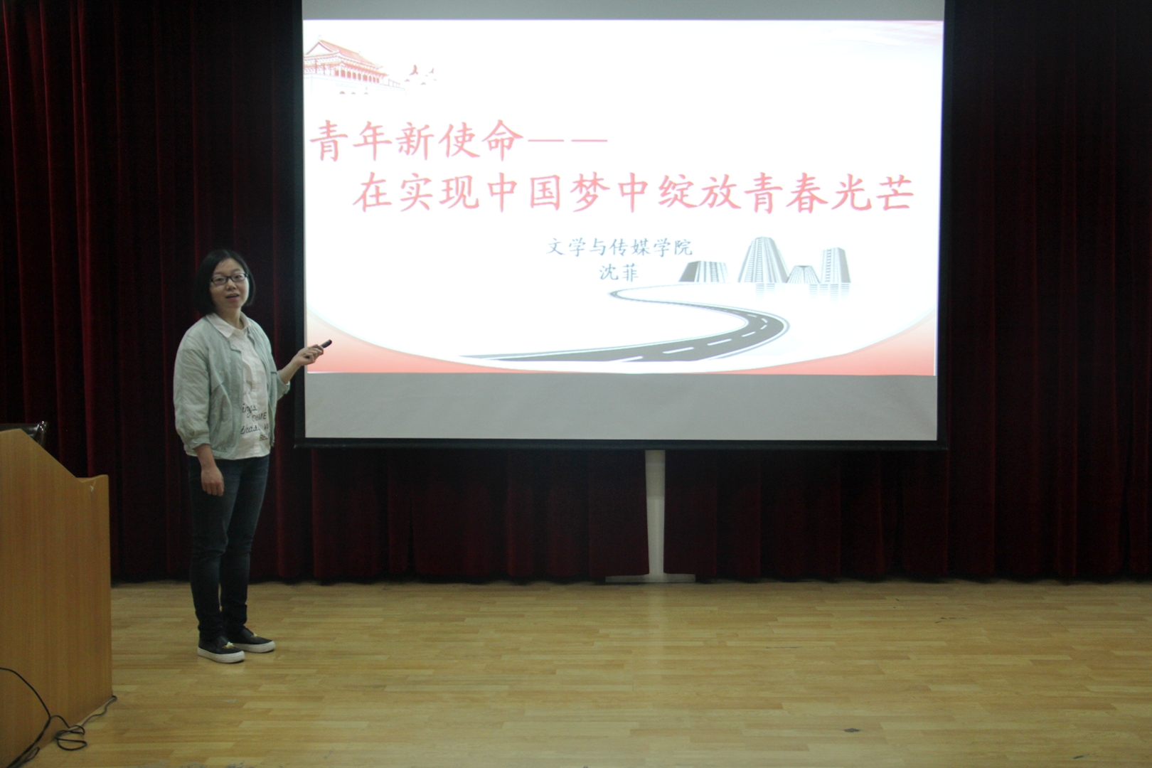 为学习和贯彻全国“两会”和党的十九大精神,围绕学工部《关于在学生中开展学习宣传贯彻党的十九大精神工作方案》要求,按照统一安排,澳门网投唯一官网于2018年4月22日晚19:30,在一号楼六楼报告厅举办题为“青年新使命——在实现中国梦中绽放青春光芒”十九大精神专题解读报告会,由学工办主任、团总支书记沈菲担任主讲。澳门网投唯一官网学工部副部长黄娟、学工部心理健康咨询中心教师柯小敏、江南校区各院系辅导员及澳门网投唯一官网2016级全体学生参加了本次报告会。