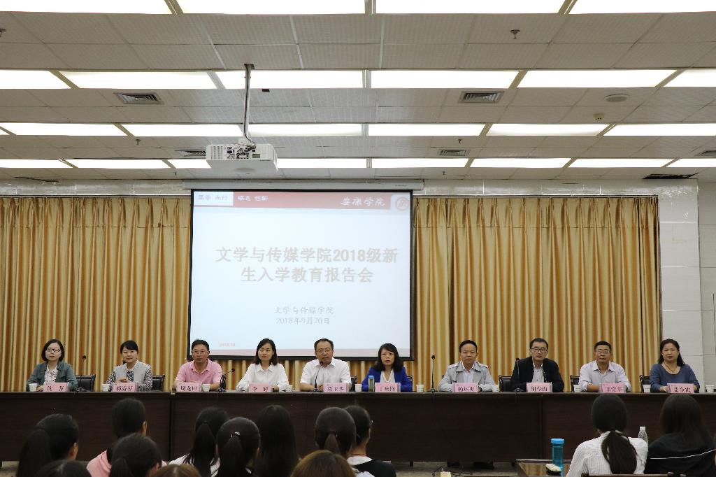 金秋九月,桂花飘香。2018年9月20日晚7点30分,澳门网投唯一官网在图书馆六楼报告厅举办2018级新生见面会暨入学教育讲座第一讲。澳门网投唯一官网院长、党总支副书记戴承元因公出差未能参加,党总支书记、副院长于咏梅,副院长梁卫华、杨运庚,汉语言文学系系主任李婷,语文公共教研室主任周龙田,秘书与新媒体系主任胡少山,党政办公室主任杨海蓉,学工办主任沈菲,辅导员邹棠华、艾全霞和2018级全体新生参加。见面会及讲座由梁卫华主持。
