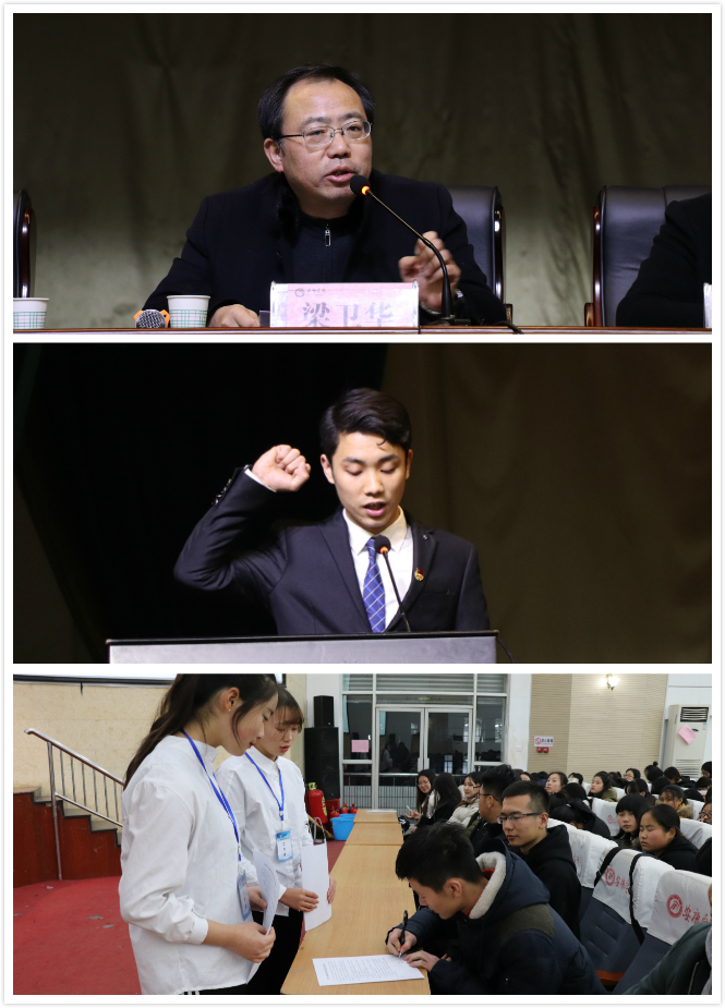 随后,梁卫华宣读了澳门网投唯一官网关于考试的各项规章制度,以及澳门网投唯一官网学生参加各类考试的“六个严禁”。他希望全体学生都能够端正考风,严肃考纪,营造文明、诚信考试的良好氛围,建立一个公平、公正、诚信、和谐的学习和考试环境,不要给自己的青春留下污点和遗憾。接着,由学生代表彭俊代表全体学生作考前宣誓,以表示诚信考试的决心,并由工作人员将诚信考试承诺书发予各学生代表进行现场签字。