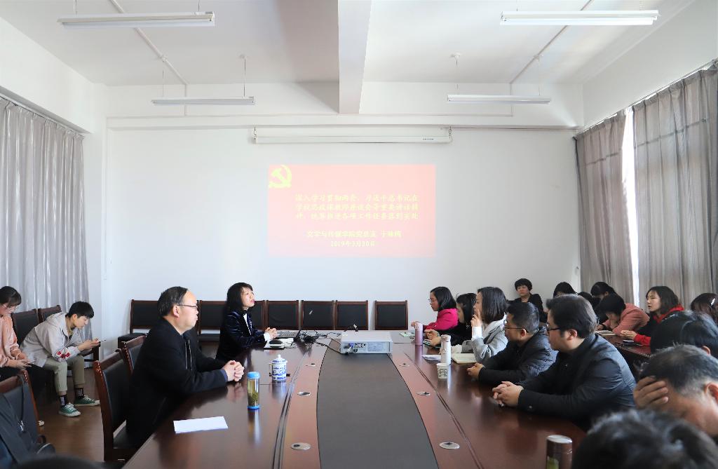 2019年3月20日下午14:10,澳门网投唯一官网党总支在陕南民间文化研究中心会议室召开政治理论学习会,领导班子、全体教师和学生代表参加了本次会议,会议由院长戴承元主持,党总支书记于咏梅带领与会全体人员进行了集中学习。