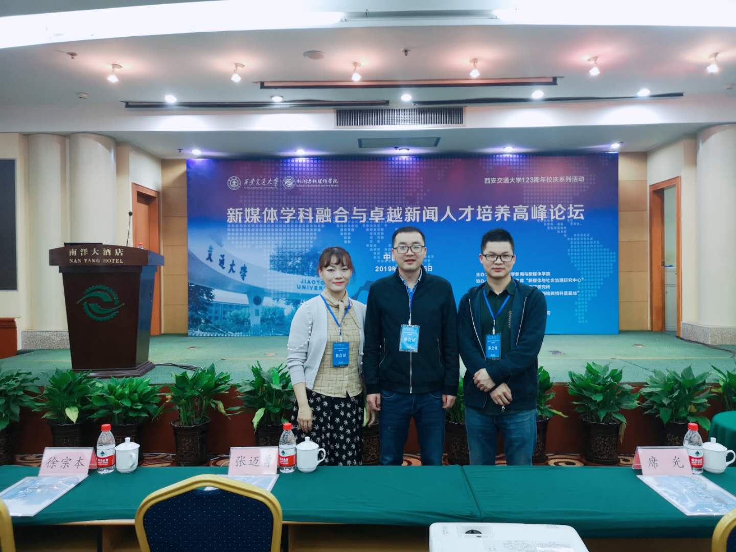 4月6日,由西安交通大学新闻与新媒体学院主办的“新媒体学科融合与卓越新闻人才培养”高峰论坛在西安交大举行,来自国内外学界、业界的30余位知名专家学者和来自国内兄弟高校的200余位学者学子云集西安交通大学,交流新媒体跨学科融合、新媒体专业发展与学科建设、智媒时代新闻传播人才培养、融媒体人才培养跨界合作以及新媒体教育教学中的人才定位与课程体系建设等问题。澳门网投胡少山、崔瑜、张建涛三位教师应邀参加会议。