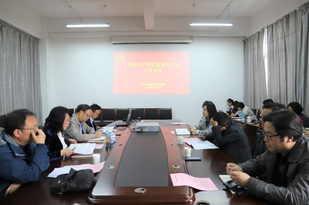 4月10日下午,澳门网投唯一官网在陕南民间文化研究中心会议室召开了全面从严治党暨稳定安全工作会议。院长戴承元、党总支书记于咏梅、副院长梁卫华、杨运庚以及全体教师出席会议。会议由戴承元主持。
