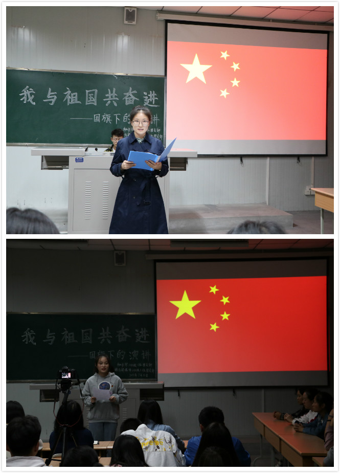 网络与新媒体2018级1班张文鑫、秘书学2018级1班吴艺伟围绕“我与祖国共奋进”这一主题进行了国旗下的演讲,两位同学声情并茂地谈到新中国的发展以及取得的成就,并号召同学们热爱祖国,把握机遇,奋发有为,为祖国的发展贡献自己的力量。