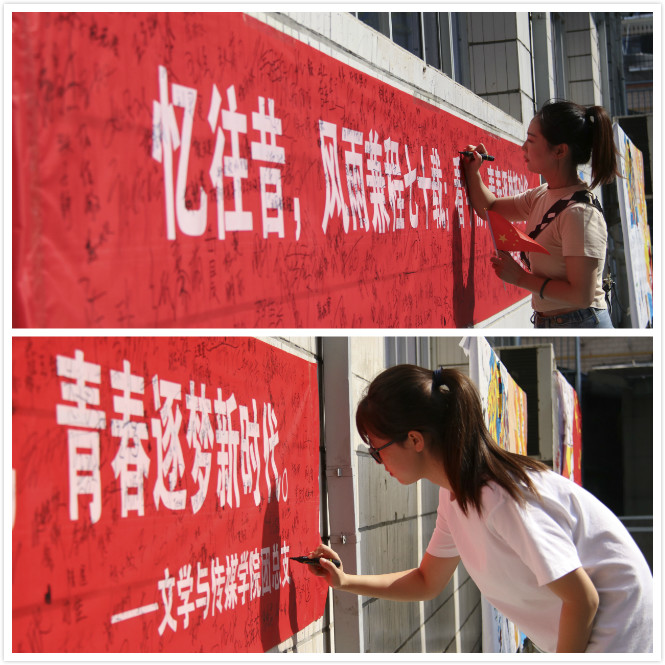 同日中午,澳门网投团总支在江南校区林荫道旁组织了“我为祖国母亲庆生”签字仪式,大家在“忆往昔,风雨兼程七十载;看今朝,青春逐梦新时代”的横幅上签上了自己的名字,一笔一划,皆是对祖国归属感和自豪感的表达。