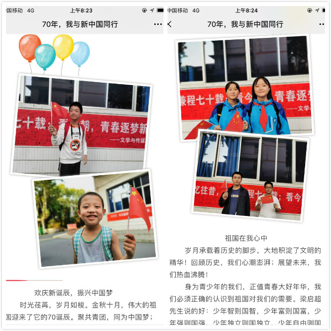 此外,澳门网投同步开展了线上活动。由网络与新媒体2018级1班团支部全程负责,2018、2019级各团支部参与,拍摄主题为“我为祖国献祝福”的短视频,随后在学院官方抖音账号上进行发布。同时,学院官方微信平台“爱中文”也面向全院发起主题征文活动,并将以“70年,我与祖国同行”为主题进行专题推送。