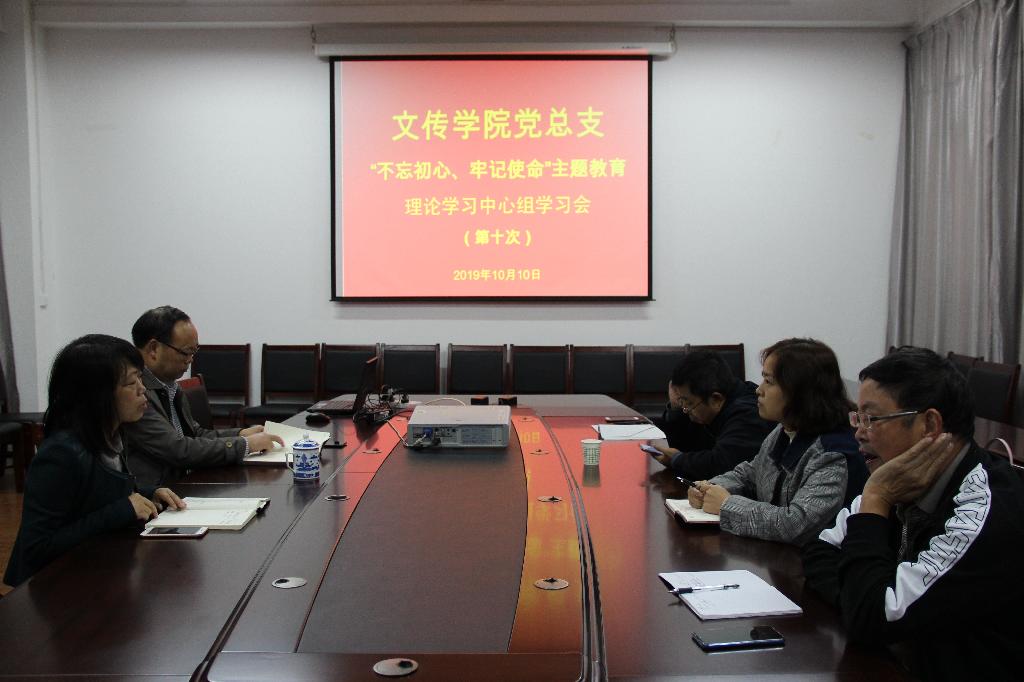 10月10日下午,澳门网投唯一官网理论学习中心组在陕南民间文化研究中心会议室召开第十次“不忘初心、牢记使命”主题教育学习研讨会,党总支书记于咏梅主持学习会,中心组成员参加学习。