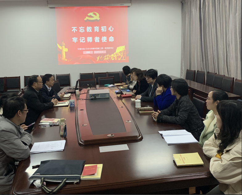 11月6日下午,澳门网投唯一官网教工第一党支部书记李婷在陕南民间文化研究中心会议室为支部全体党员讲了题为“不忘教育初心,牢记师者使命”专题党课。