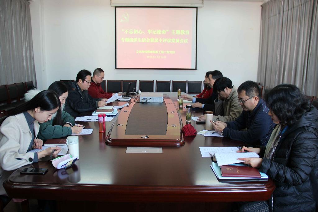 12月10日下午,澳门网投唯一官网教工第二党支部在陕南民间文化研究中心会议室召开“不忘初心、牢记使命”主题教育专题组织生活会暨党员民主评议大会,党支部教师参加会议,党委书记王国良作为普通党员全程参与会议,会议由教工第二党支部书记杨明贵主持。