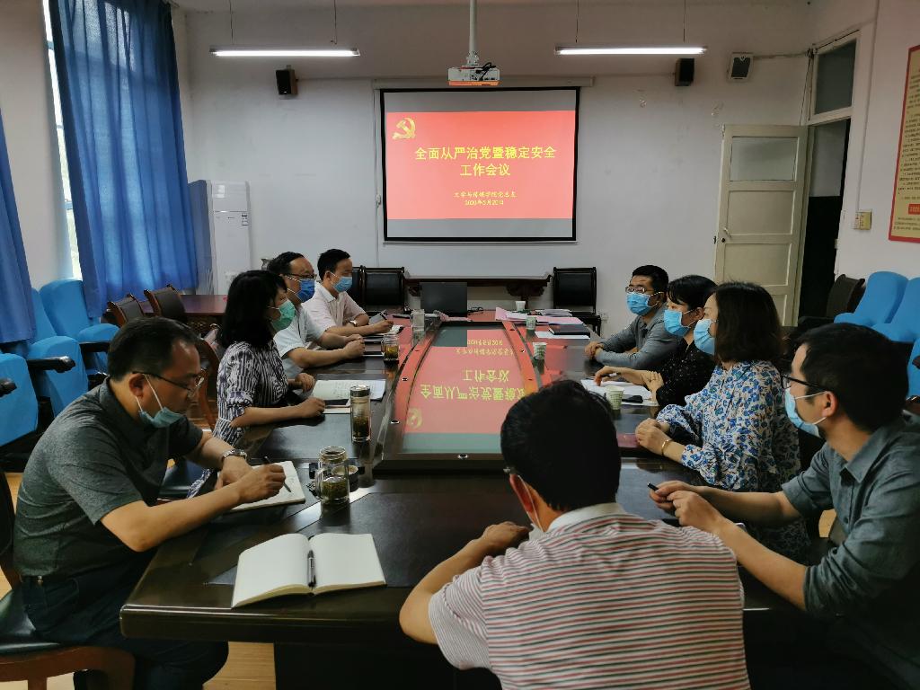 2020年5月20日下午14:30,澳门网投唯一官网党总支在2307室召开了2020年全面从严治党暨稳定安全工作会议。澳门网投唯一官网领导班子及中心组全体成员出席会议,会议由于咏梅主持。
