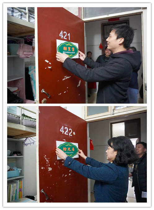 学工部副部长钟泽斌宣布澳门网投唯一官网第二届宿舍风采大赛正式启动。出席启动仪式嘉宾为2020级新生宿舍授予了雅名门牌,并前往学生宿舍张贴门牌。
