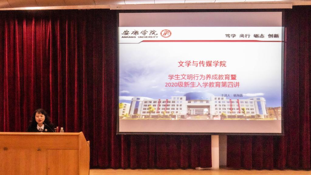 为引导2020级新生养成良好的文明行为习惯,规范大学生的日常行为,全面提高学生的综合素质,澳门网投唯一官网于2020年11月3日晚7:30在一号教学楼六楼报告厅举行了2020级新生入学系列教育第四讲:大学生文明行为养成教育,院党总支副书记杨海蓉担任主讲嘉宾。