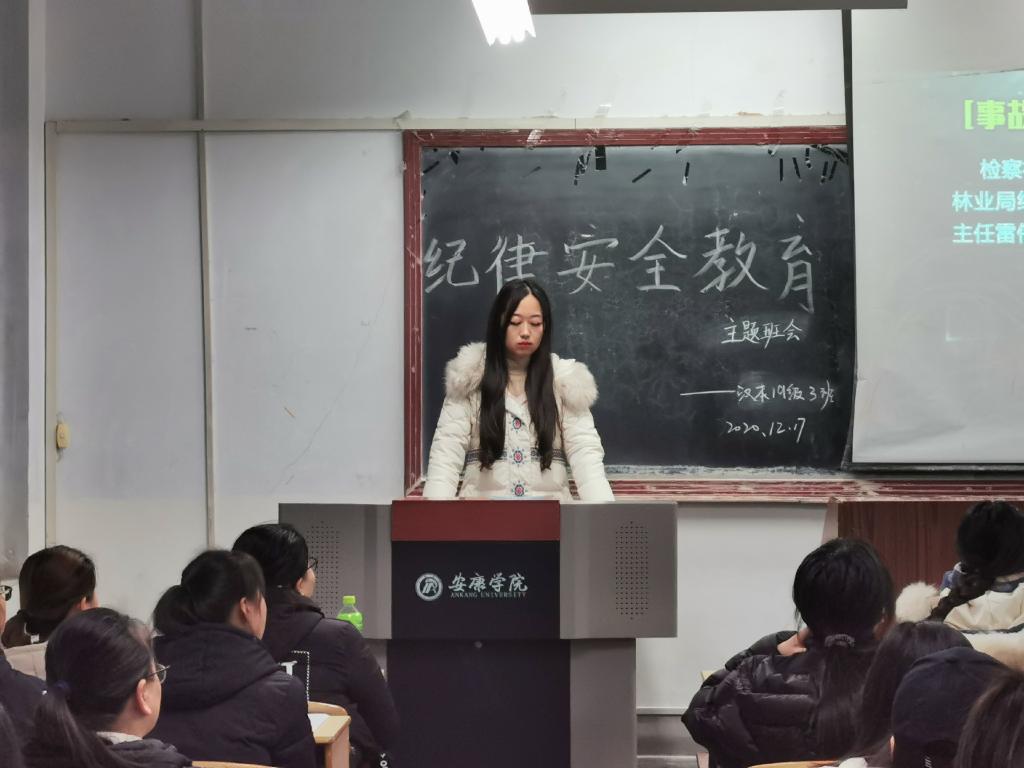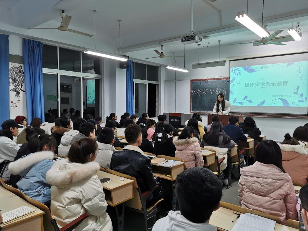为进一步加强学风建设,促进纪律规范遵守,在寒冬来临之际,澳门网投唯一官网汉语言文学2019级3班于12月17日晚上七点半在1219教室率先开展了“纪律安全警示教育”主题班会活动。班级全体同学及辅导员彭潇参加会议,会议由白欢庆主持。
