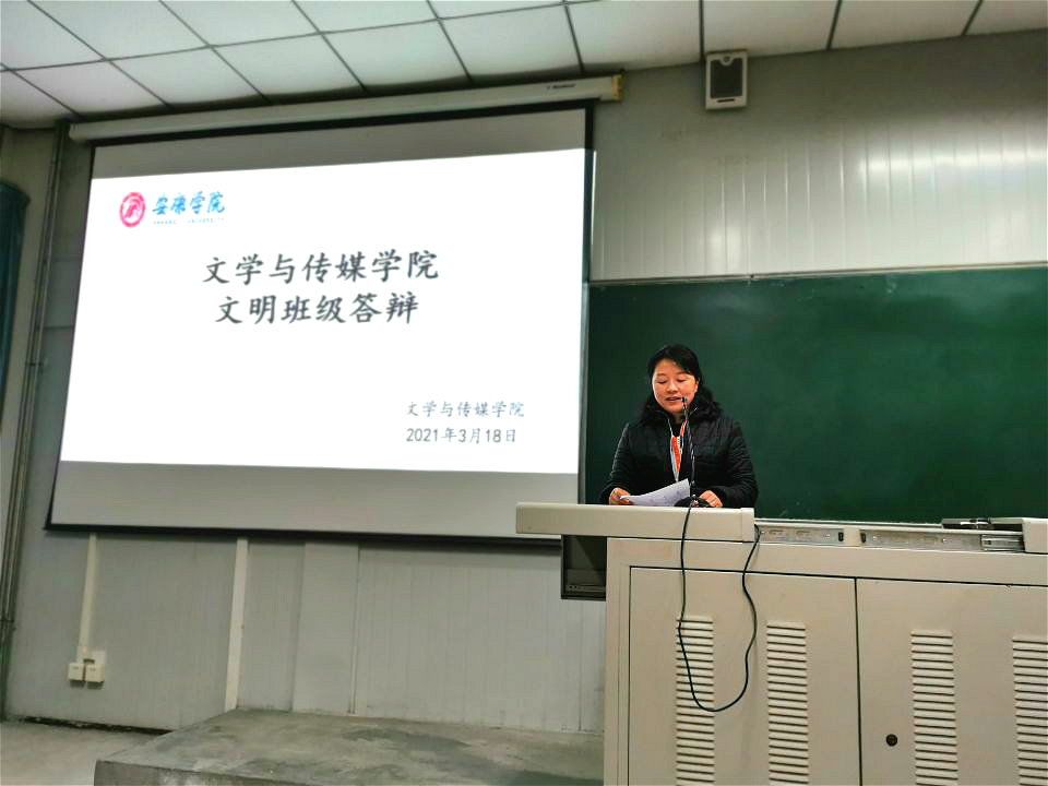 为推进澳门网投学风建设,增强班集体的凝聚力,充分发挥文明班级的示范引领作用,2021年3月18日19:00,澳门网投唯一官网在1012室举行了2020—2021学年度文明班集体答辩活动。本次活动由党总支副书记杨海蓉、学工办主任薛涛、团总支书记彭潇、辅导员艾全霞担任评委,澳门网投2018—2020级的各班学生骨干参与此次答辩。活动由汉语言文学19级1班路怡鸿主持。