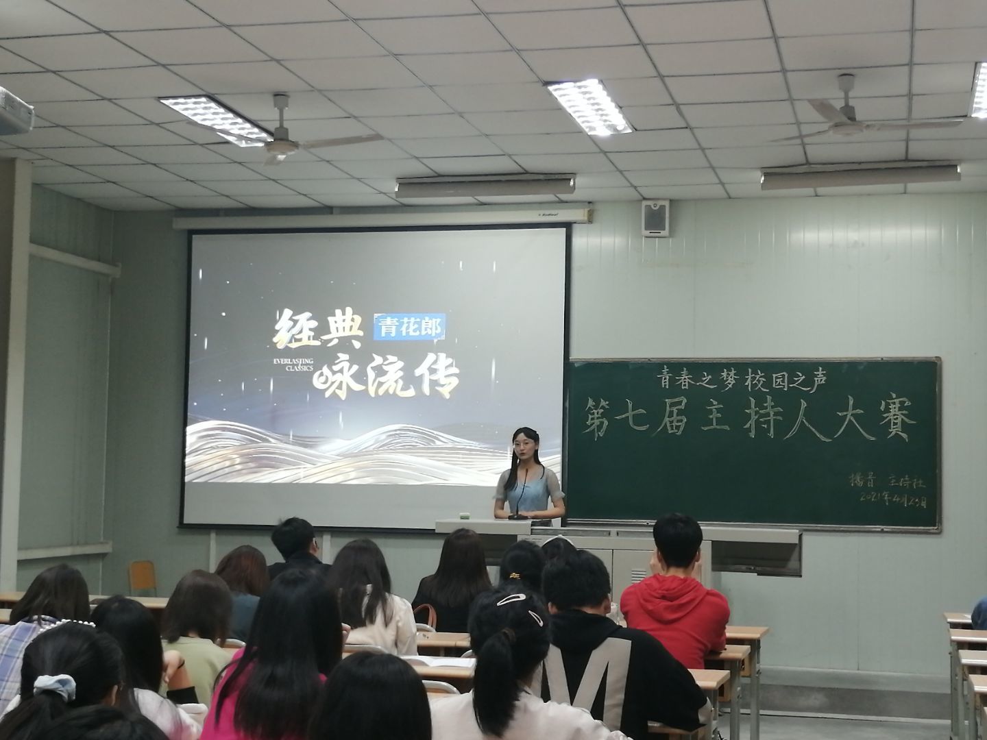 4月23日晚,由澳门网投唯一官网播音主持社举办的“青春之梦,校园之声”第七届主持人大赛决赛在江南校区1024教室如期举行。出席本次大赛的评委有澳门网投唯一官网邸玲老师、崔瑜老师和社团指导老师黄治强老师。播音主持社全体社员、参赛选手的亲友团以及兴趣观众观看了本次比赛。
