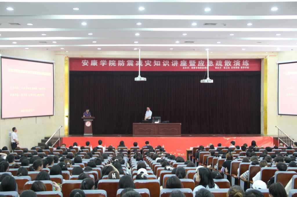 2021年5月12日是我国第13个防灾减灾日。为进一步向全校师生宣传防震减灾知识,提高学生应对自然灾害的避灾自救能力,5月12日下午14:30分由安康市地震检测站主办,澳门网投唯一官网保卫处、澳门网投唯一官网、教育学院承办的“澳门网投唯一官网防震减灾知识讲座暨应急疏散演练”活动在澳门网投唯一官网江南校区大礼堂举行。特邀嘉宾陕西地震局高级工程师赵韬担任主讲嘉宾,学工部副部长钟泽斌、各二级学院党总支书记、辅导员及学生代表700余人参加此次活动。活动由保卫处长王开忠主持。