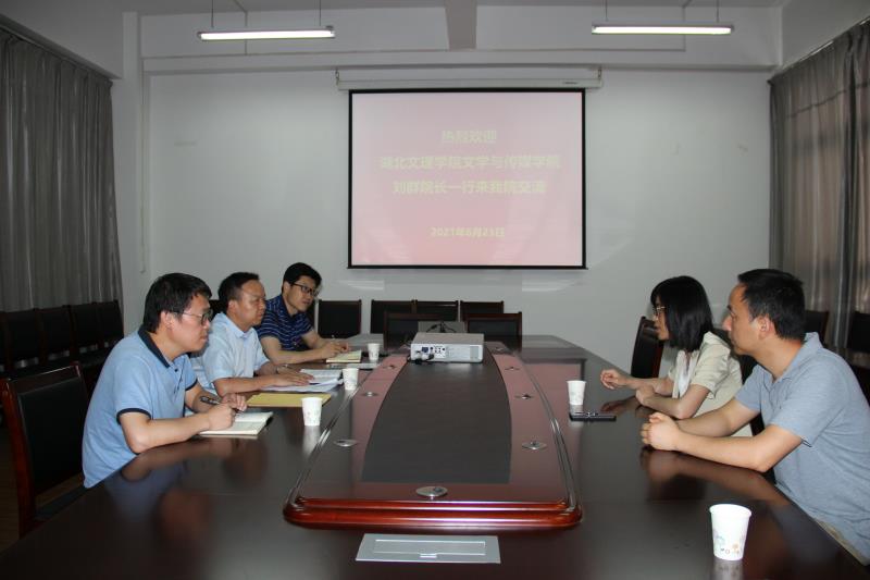2021年6月24日,湖北文理学院澳门网投唯一官网刘群院长一行来澳门网投访问交流。澳门网投唯一官网院长杨运庚、党总支书记芦伟、副院长朱云在陕南民间文化研究中心会议室与来访人员进行了座谈交流。
