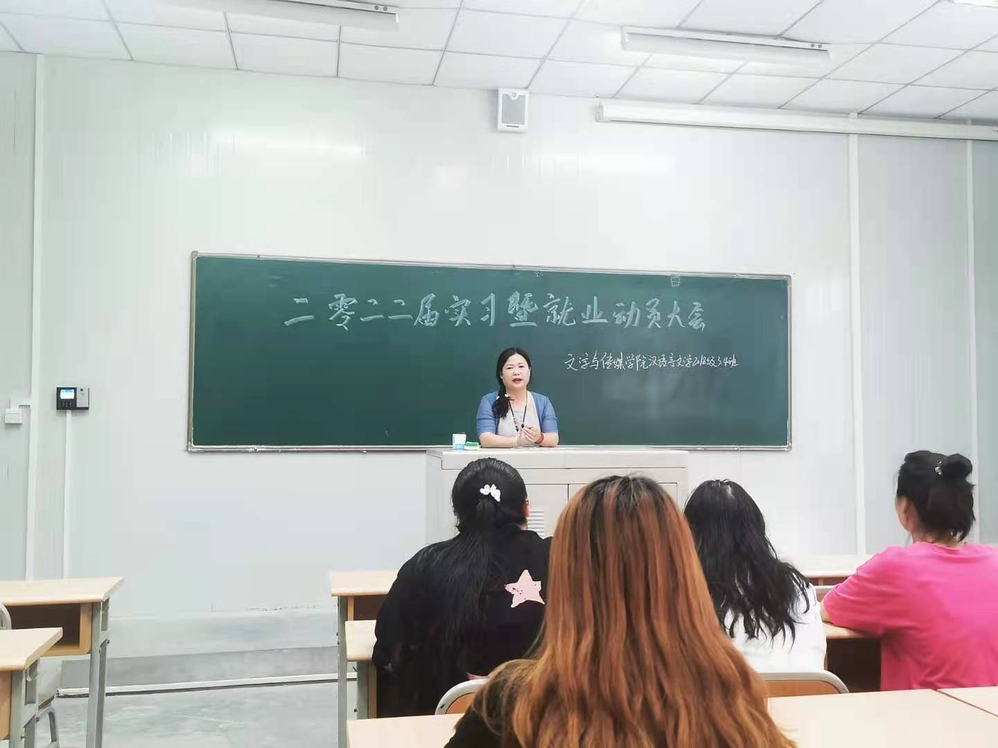 2021年9月7日下午,澳门网投唯一官网组织召开汉语言文学专业2022届学生实习就业动员会。院党总支副书记杨海蓉参会,辅导员艾全霞主持会议。
