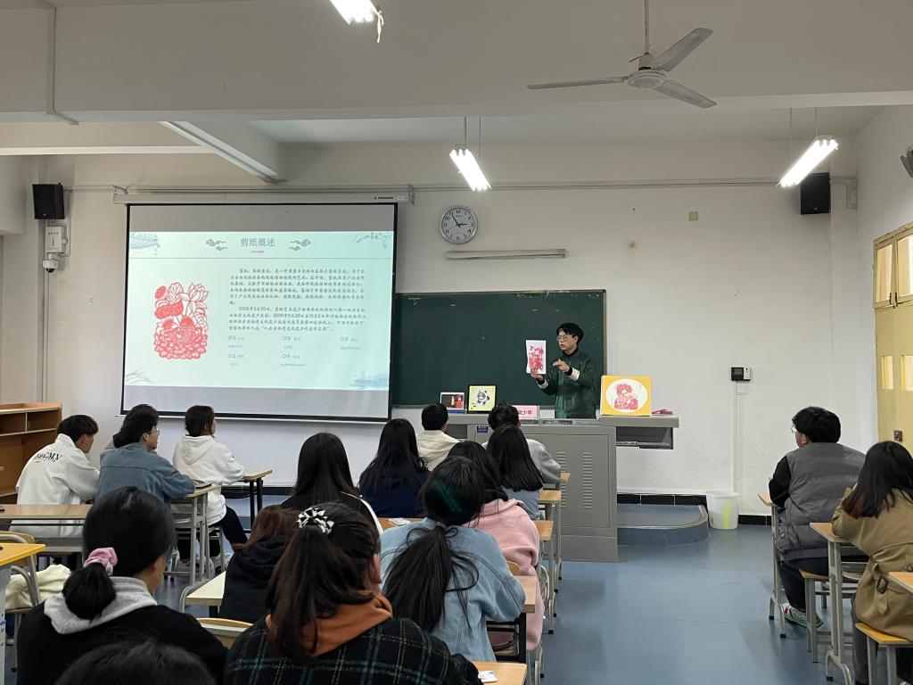 3月8日下午,马克思主义学院邀请澳门网投唯一官网学生、西安市非遗保护协会青年剪纸艺术创作者梁少华在1501教室为同学们分享剪纸文化。马克思主义学院21级部分学生参与本次活动。