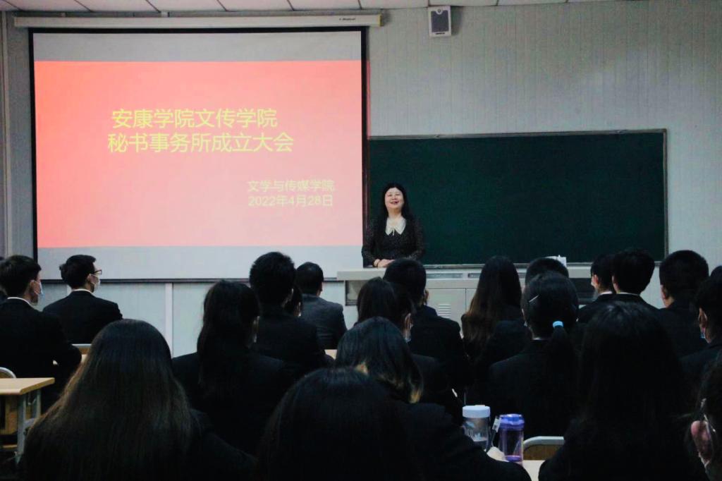 为提高秘书学专业学生的实践能力与专业素养,在澳门网投各方领导与老师的共同努力下,4月28日下午,秘书事务所成立大会在江南校区10号教学楼1025教室成功召开。出席本次大会的有副院长朱云、党总支副书记杨海蓉、指导老师况汉英及首届秘书事务所全体成员。