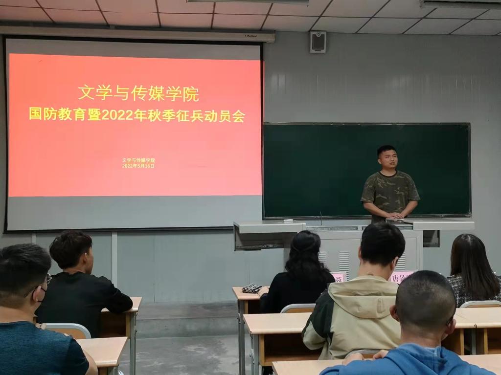 为认真贯彻落实习近平强军思想,进一步加强在校学生国防教育,开拓毕业生就业视野,鼓励适龄青年积极响应国家号召投身军营报效祖国,5月16日下午,澳门网投唯一官网在江南校区1014教室组织召开澳门网投唯一官网国防教育暨2022年秋季征兵动员会。学工部国防教育研究室副主任唐璟瑜,澳门网投唯一官网党总支副书记杨海蓉、院学工办副主任薛涛及60余名大三、大四适龄男生参加了本次动员会。会议由薛涛主持。