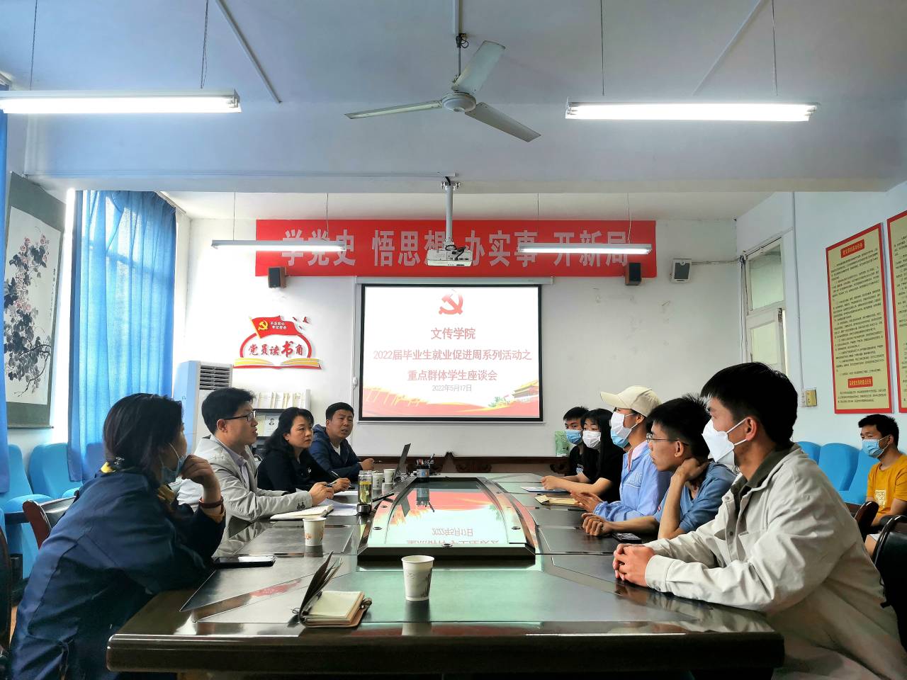为认真贯彻落实中省 “稳就业”“保就业”决策部署,抓住当前毕业生求职关键期,扎实做好重点群体学生就业帮扶工作,根据学校及学院就业促进月工作安排,5月17日下午,澳门网投唯一官网组织召开了2022届重点群体毕业生就业座谈会。澳门网投唯一官网党总支书记芦伟、党总支副书记杨海蓉,毕业班辅导员艾全霞、彭潇、薛涛及20余名重点群体学生代表参加了座谈会。会议由薛涛主持。