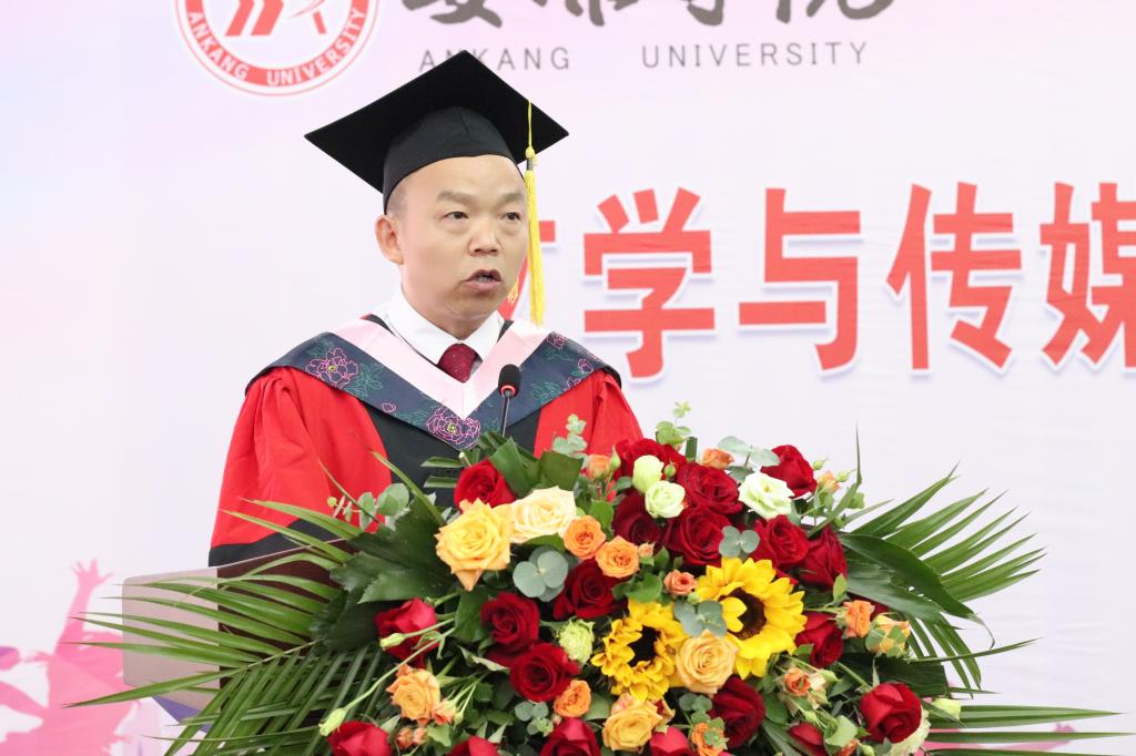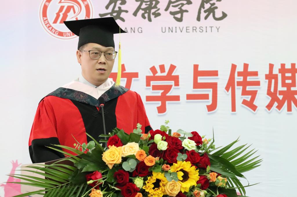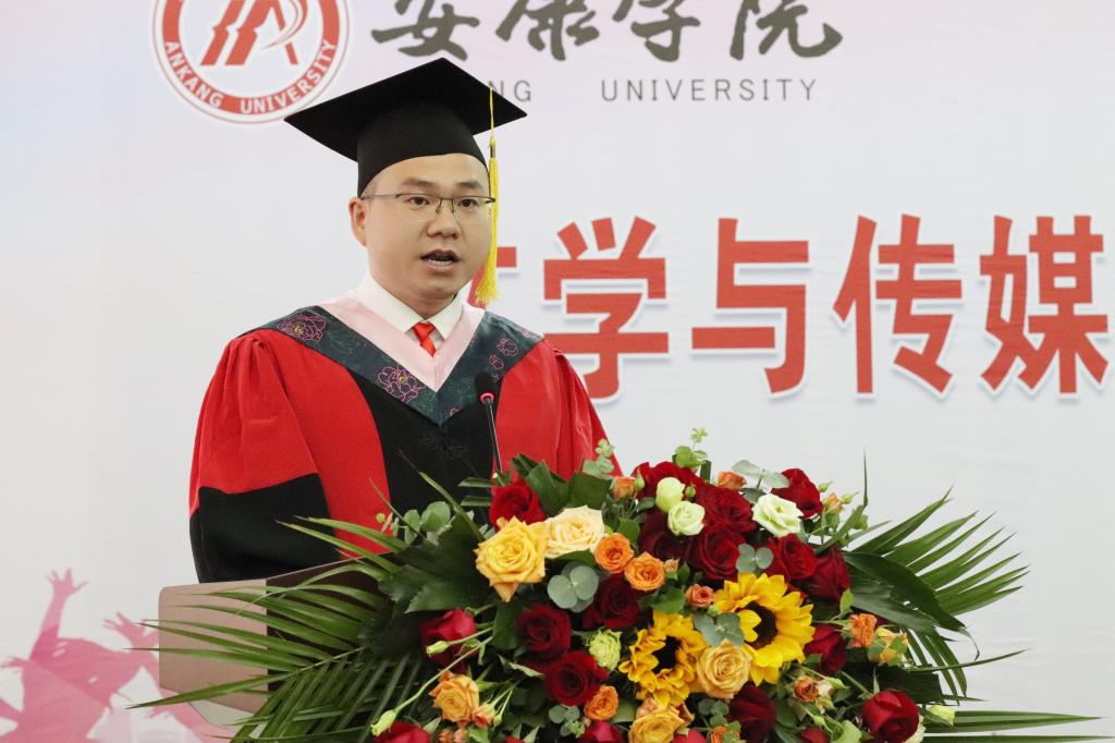 秘书学专业于家彬代表2022届全体毕业生对辛勤培育自己的老师表达了由衷的感谢,她表示将带着文传学子自信、向上、奋斗的精神风貌,以实际行动践行“笃学、尚行、砺志、创新”的校训,关注时代的巨变,顺应时代的号召,坚定信念跟党走,在接续奋斗中继往开来,承载起青年一代的使命担当。