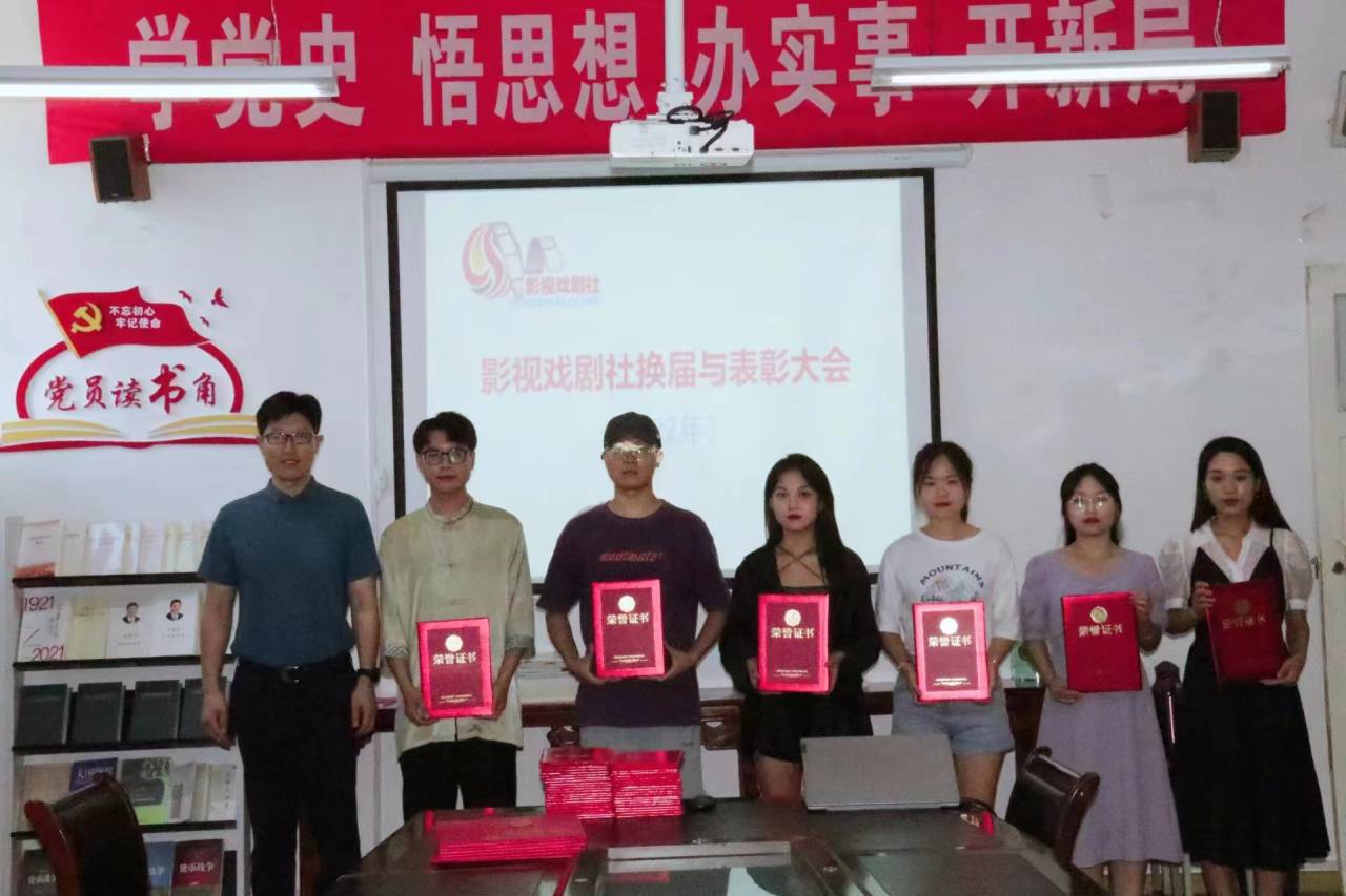 2022年6月24日下午,我校影视戏剧社换届与表彰大会在江南校区2307会议室召开。澳门网投唯一官网党总支书记芦伟、副书记杨海蓉、影视戏剧社指导老师邹棠华以及影视戏剧社成员近三十人出席了会议。会议由影视戏剧社常务副社长桑雪同学主持。