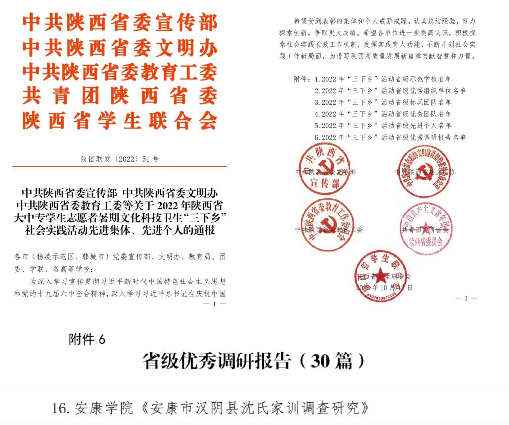 导航痕迹 首页 > 新闻通知 > 学院新闻 > 正文 学院新闻 通知公告 澳门网投唯一官网“三下乡”社会实践报告获省级优秀调研报告 发布人: 发布日期:2022年10月24日 阅读次数: 近日,中共陕西省委宣传部、中共陕西省委文明办、中共陕西省委教育工委、共青团陕西省委、陕西省学生联合会组织的2022年陕西省大中专学生志愿者暑期文化科技卫生“三下乡”社会实践活动评选结果公布。澳门网投赴汉阴县开展家训文化调查暑期社会实践团队(带队老师:李欣逸;团队成员:王彧潇、康贤洁、王英培、欧童谣、刘静)所撰写的实践报告《安康市汉阴县沈氏家训调查研究》获评“省级优秀调研报告”。 澳门网投唯一官网近年来积极组织“三下乡”暑期社会实践活动,将专业特色与社会实践进行有机结合,从而推动文化创新发展,不断增强学生的文化自信和文化认同感,助力社会实践活动高质量发展。 撰稿、图片/王彧潇 审核/杨海蓉 发布/薛涛