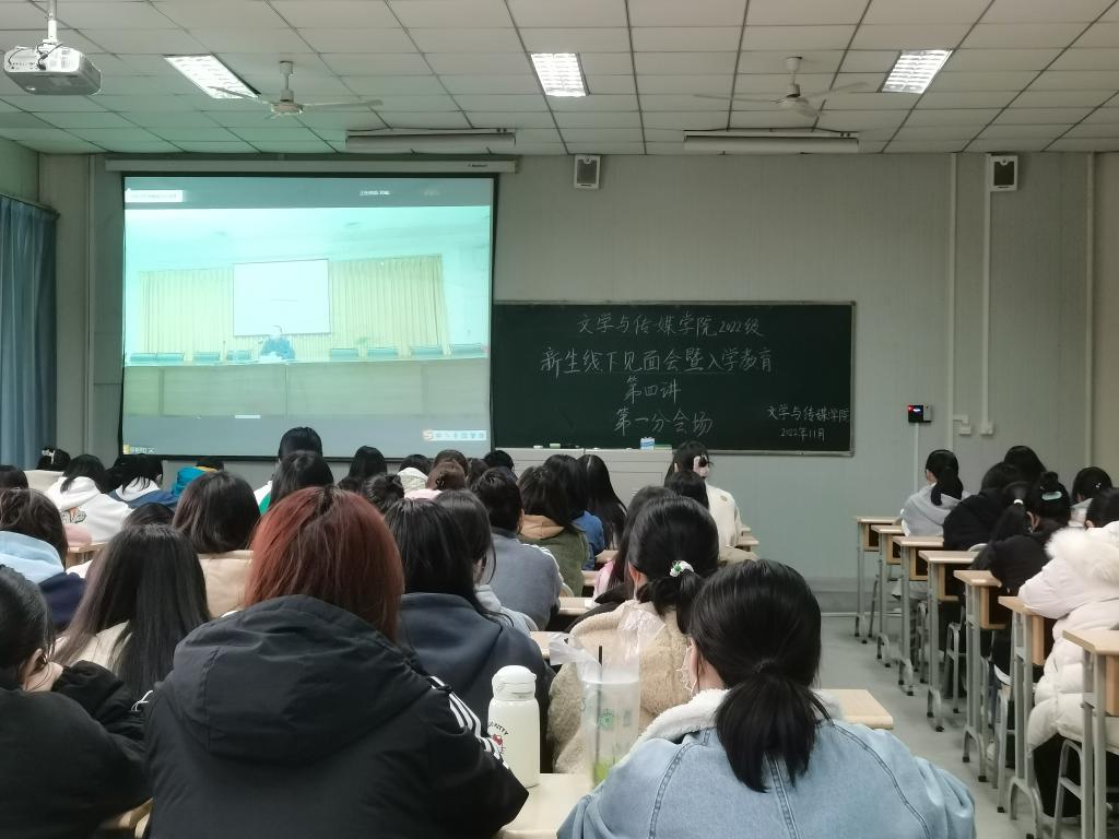 2022年11月16日下午,澳门网投唯一官网在图书馆6楼报告厅隆重举行2022级新生见面会及入学教育第四讲。因为疫情,见面会采用线上与线下结合的方式进行,设置一个线下主会场、两个线上分会场。澳门网投唯一官网领导班子、系主任、两办主任、新生辅导员及全体2022级新同学分别以线上线下的形式参会。见面会由澳门网投唯一官网党总支副书记杨海蓉主持。