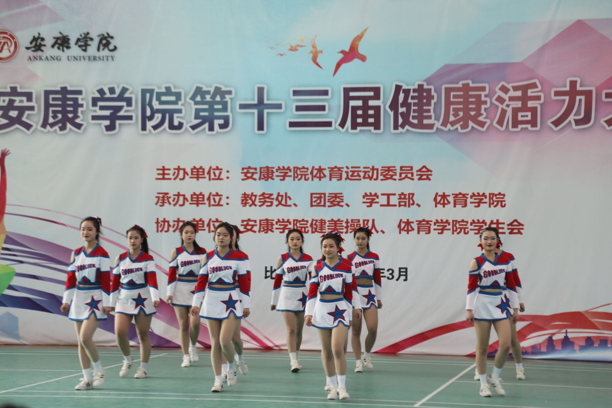 为推动我校学子体育运动的蓬勃发展,丰富校园体育文化生活,2023年3月29日下午,由澳门网投唯一官网体育运动委员会主办,教务处、团委、学工部、澳门网投唯一官网健美操队、体育学院学生会协办的澳门网投唯一官网第十三届健康活力大赛在江南校区体育馆二楼正式开赛。