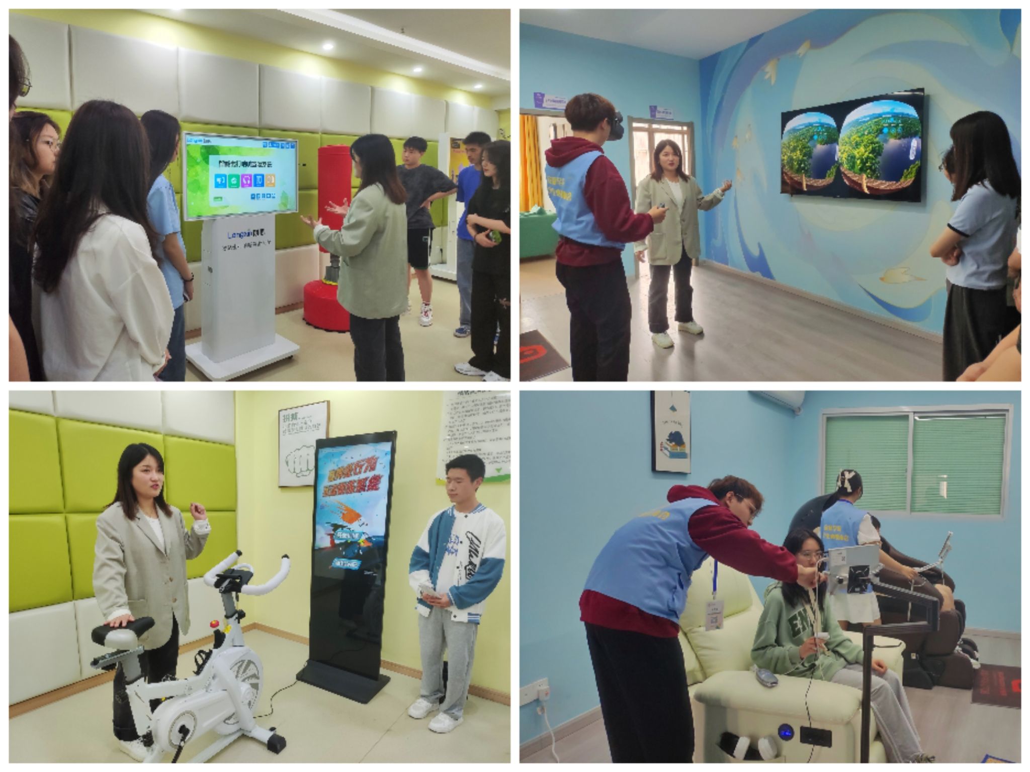 首先,柯小敏为同学们介绍健康中心基本设施和预约心理辅导的详细流程,强调了心理辅导的保密原则。同学们跟随老师的讲解参观了各个活动室,了解了各项设施和使用方法,现场同学积极尝试,亲身体验。同学们纷纷表示此次参观活动生动有趣,揭开了心理室的“神秘面纱”,提升了大家对心理健康的关注和预防意识。