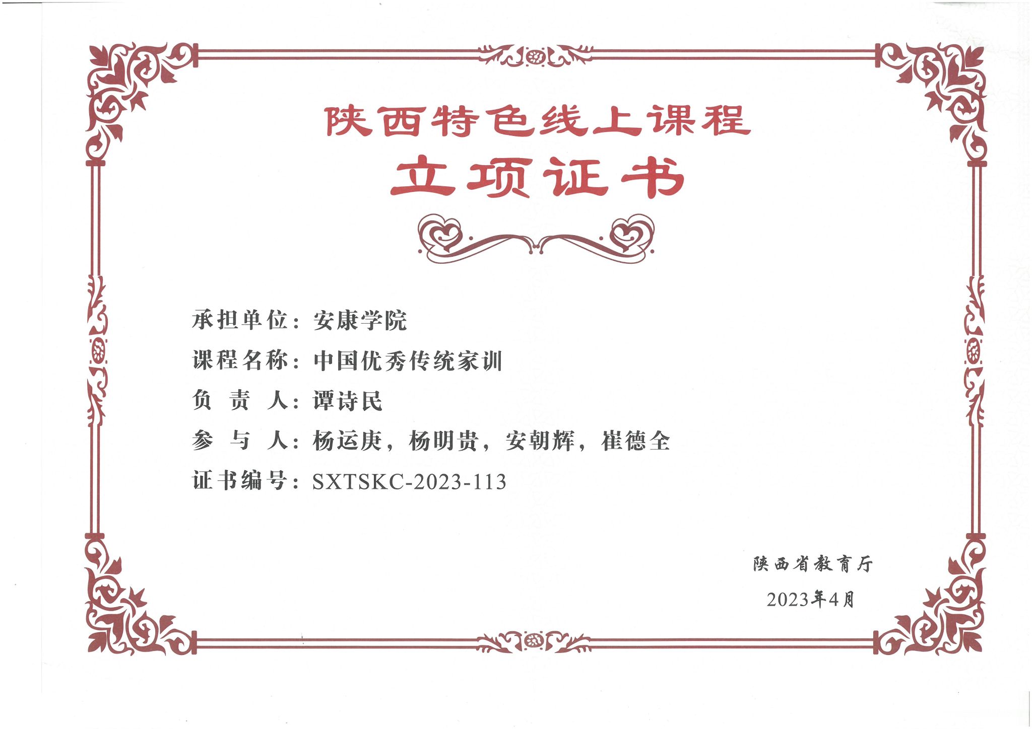 4月20日,陕西省委教育工委、省教育厅组织召开了陕西数字教育大会。大会以“数字化赋能教育高质量发展”为主题,包括主会场及基础教育、职业教育和高等教育等3个分会场活动。高等教育分会场活动中发布了陕西特色线上课程立项建设名单,并向教师代表颁发了立项证书。澳门网投谭诗民博士主持申报的《中国优秀传统家训》课程获陕西特色线上课程立项建设,并参会领取了立项证书。