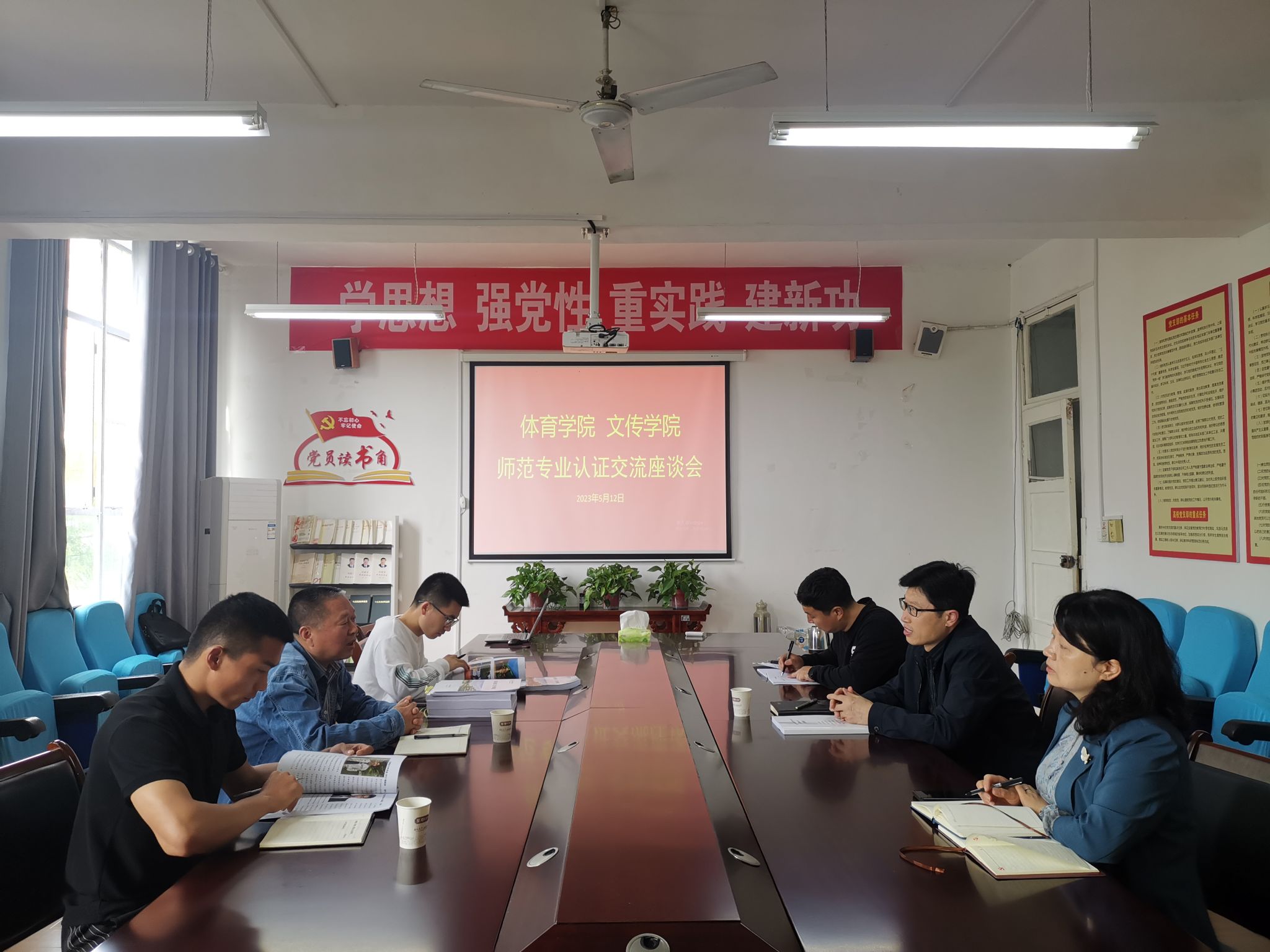 5月12日上午8点半,体育学院党总支书记高立平、学工办主任王立一行来澳门网投唯一官网进行师范专业认证交流,澳门网投唯一官网党总支书记芦伟、党总支副书记杨海蓉、学工办副主任薛涛热情接待并组织交流座谈。活动由澳门网投唯一官网党总支书记芦伟主持。