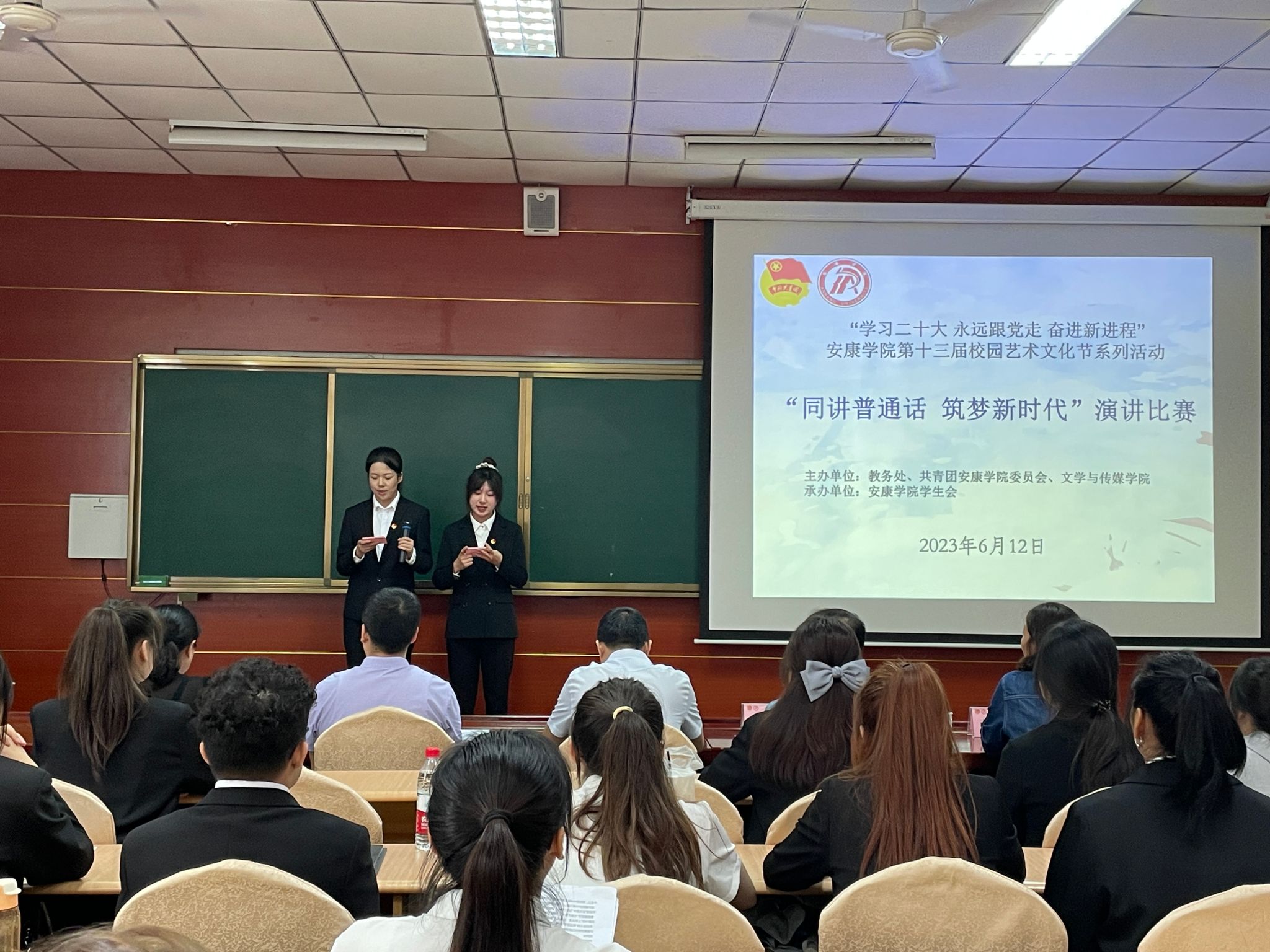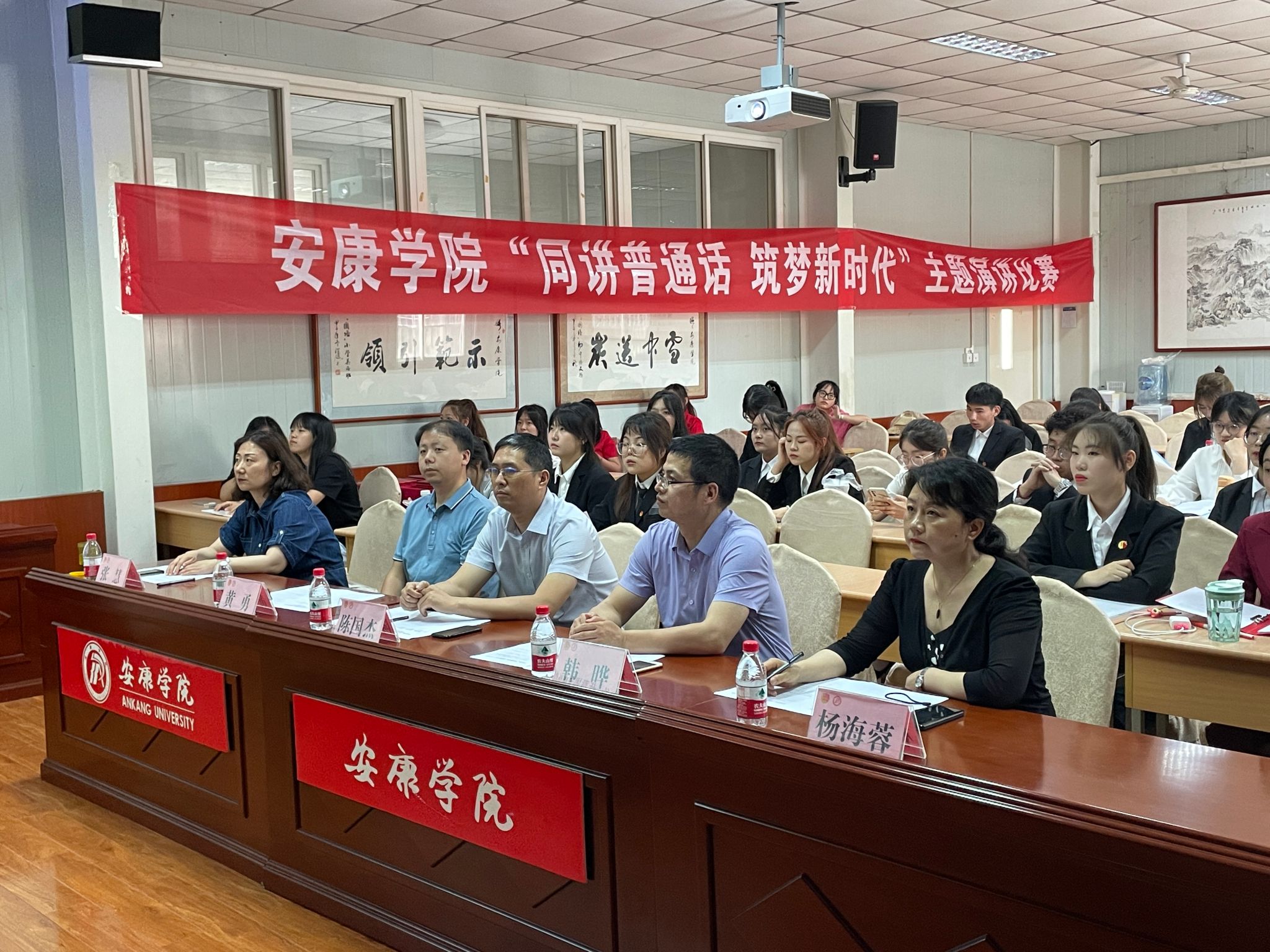 6月12日,我校在江南校区举办了“同讲普通话,筑梦新时代”主题演讲比赛。本次比赛是配合陕西省教育厅、省语委办组织开展的陕西省大中小学“同讲普通话 筑梦新时代”主题演讲比赛而举办的校级演讲比赛,由教务处、团委和澳门网投唯一官网共同主办。经过前期各院系选拔推荐,共有13个院系26名选手入围决赛。大赛由党委组织部、宣传部、团委、教务处、澳门网投唯一官网等二级单位相关负责同志担任评委。