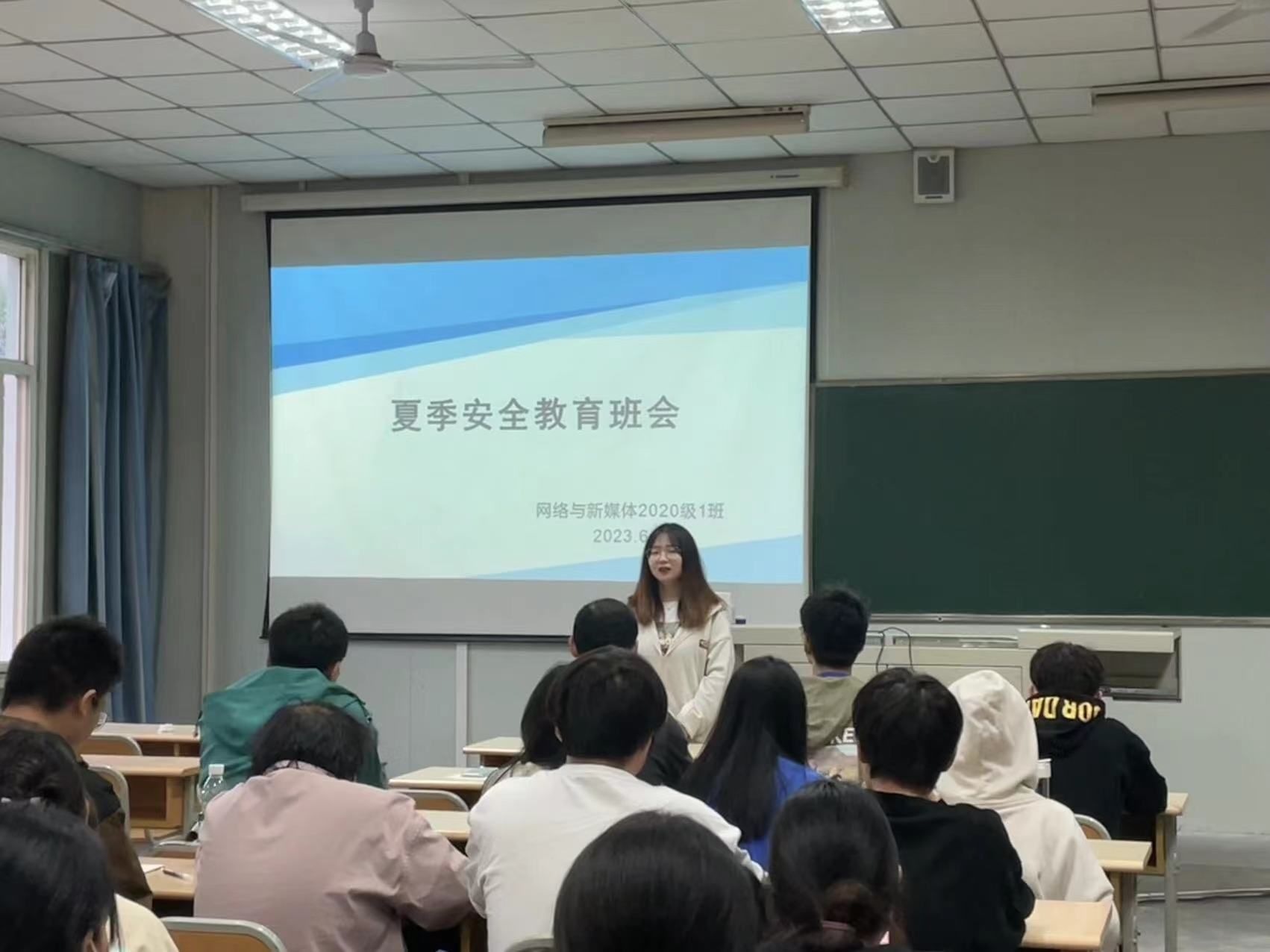 各辅导员深入班级,通过文字、图片、视频等形式,带领学生认真学习夏季安全教育方面的相关知识,主要围绕夏季防溺水安全、消防安全、卫生安全、用电安全、人身财产安全、网络安全等几个方面进行主题宣传教育。