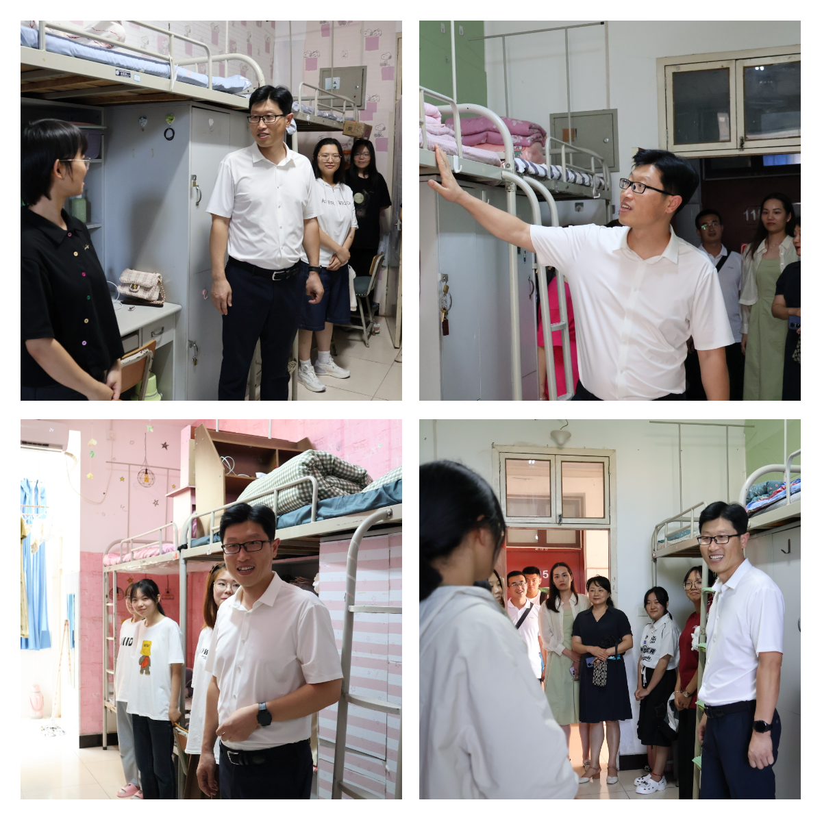 为促进师生交流,深入了解2023级新生在校生活,2023年9月5日下午,澳门网投唯一官网领导班子成员和学工办辅导员深入宿舍看望新生。