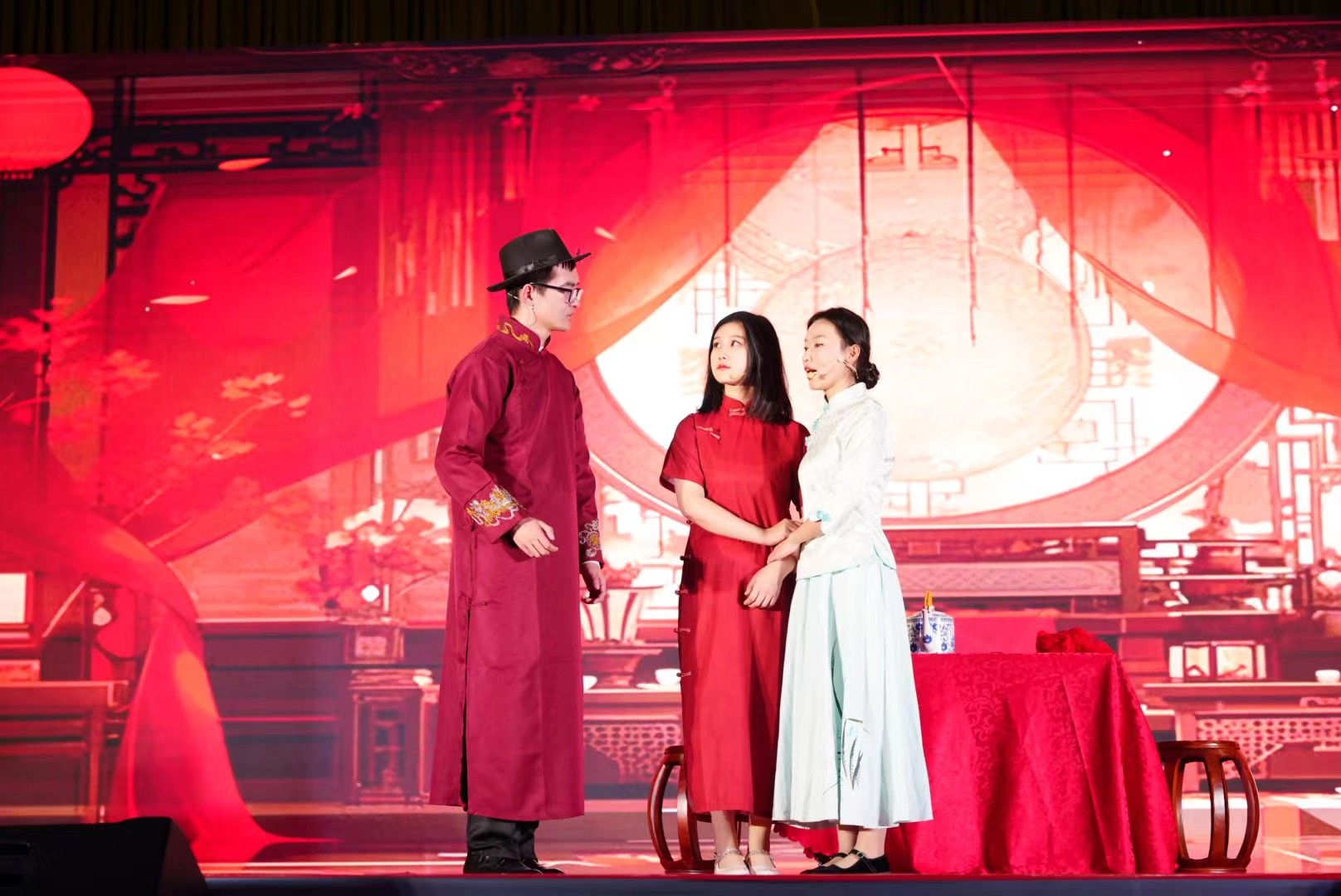为参与本次校园艺术节演出,澳门网投唯一官网党委高度重视,校团委和澳门网投唯一官网进行了精心组织,在此期间,省、市戏剧家协会也给予了多方面的悉心指导和帮助,全体参演人员经过半年多的筹备和排练,完成了该剧的舞台呈现。该剧由澳门网投唯一官网教师、安康市戏剧家协会副主席邹棠华编剧并导演,影视戏剧社30余名学生参加了演出。该剧以“五四运动”和“双十二事变”两个历史事件为时代背景,演绎了一个发生在陕西省安康市汉阴县双河口镇的红色题材爱情故事,展现了陕南人民在民族危亡的关键时刻所表现出的家国情怀以及为新中国建立所做出的重要贡献。人物和剧情虽属虚构,但反映了民国时期汉阴县的人文历史,对青少年进行红色教育,对汉阴县历史文化的挖掘与传承都具有积极的意义。演出现场气氛热烈,掌声雷动,舞台呈现画面精美,剧情扣人心弦,随着剧情的推进,观众一次次被剧中主人公的命运所打动,深受其中舍身救国精神的洗礼。演出结束,演员和观众还意犹未尽,久久不愿离开演出现场。本台演出收到了很好的思想教育与艺术教育双重效果。
