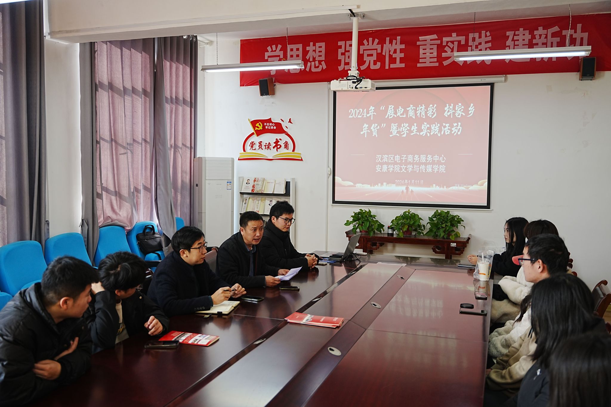 为加强澳门网投网络与新媒体专业学生实训实践,提高学生专业技能的运用能力,强化服务地方的办学宗旨。2024年1月11日中午,澳门网投唯一官网2307会议室开展了由汉滨区电子商务服务中心与澳门网投唯一官网等单位联合举办的2024年“展电商精彩,抖家乡年货”暨学生实践活动启动会,本次会议由澳门网投唯一官网副院长曹刚主持,安康市电子商务联合会秘书长张铁汉、网络与新媒体专业教师张建涛及网络与新媒体专业2021级学生代表共同出席本次会议。