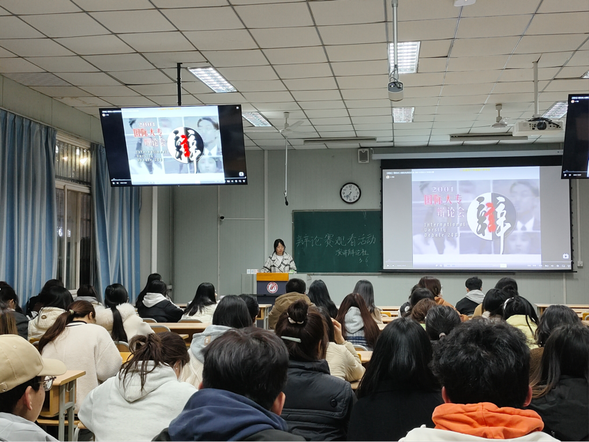 2024年3月6日晚上19点30分,澳门网投唯一官网演讲辩论社在我校江南校区十号教学楼1014教室开展了“是否能以成败论英雄”为主题的国际大专辩论赛的观摩活动。参加本次活动的有演讲辩论社全体成员。