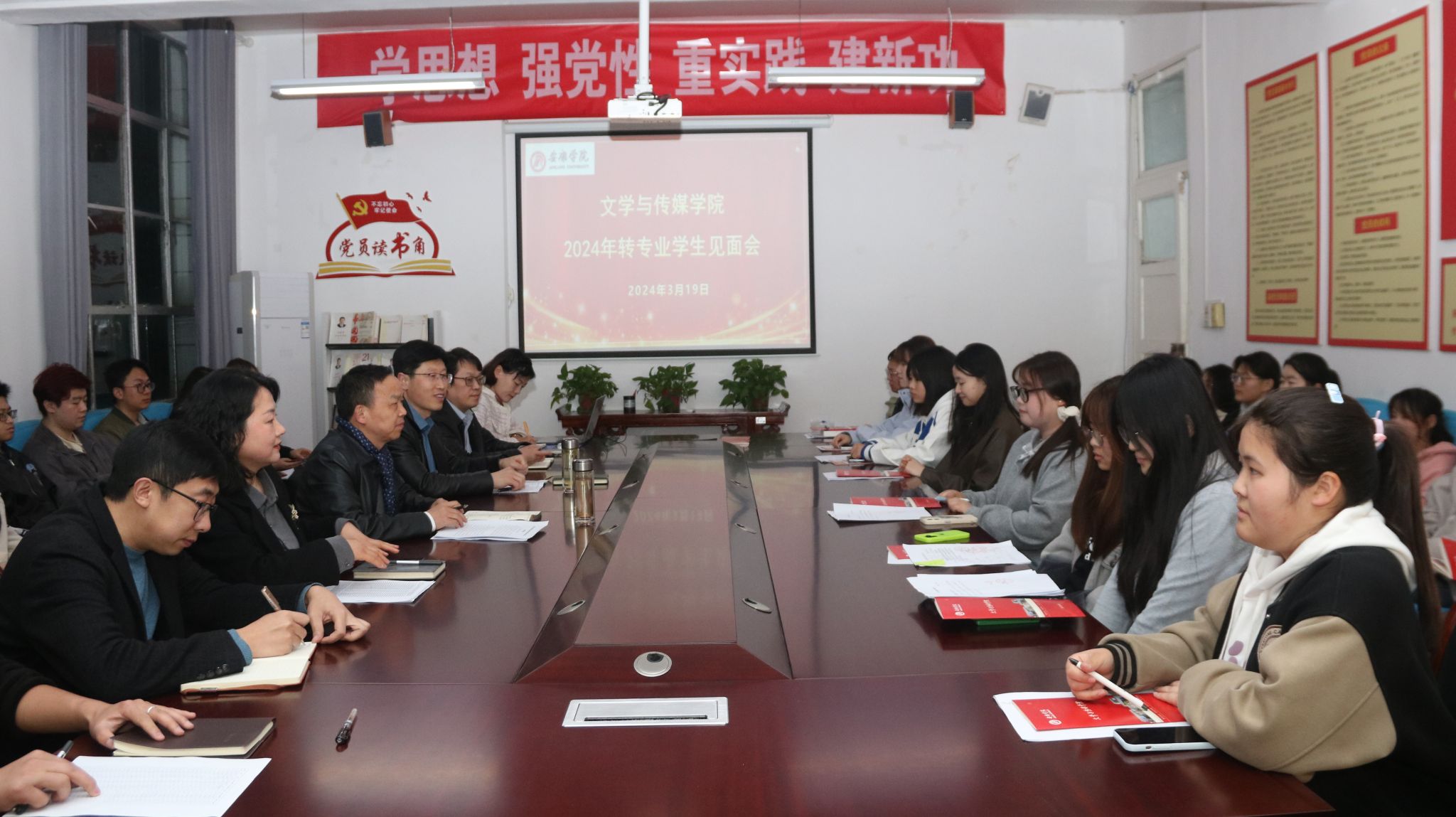 3月19日晚,澳门网投唯一官网在2307会议室召开2024年转入澳门网投唯一官网学生见面会,文学与传媒学院领导班子、综合办公室主任、2023级辅导员出席见面会,会议由院党总支副书记杨海蓉主持。