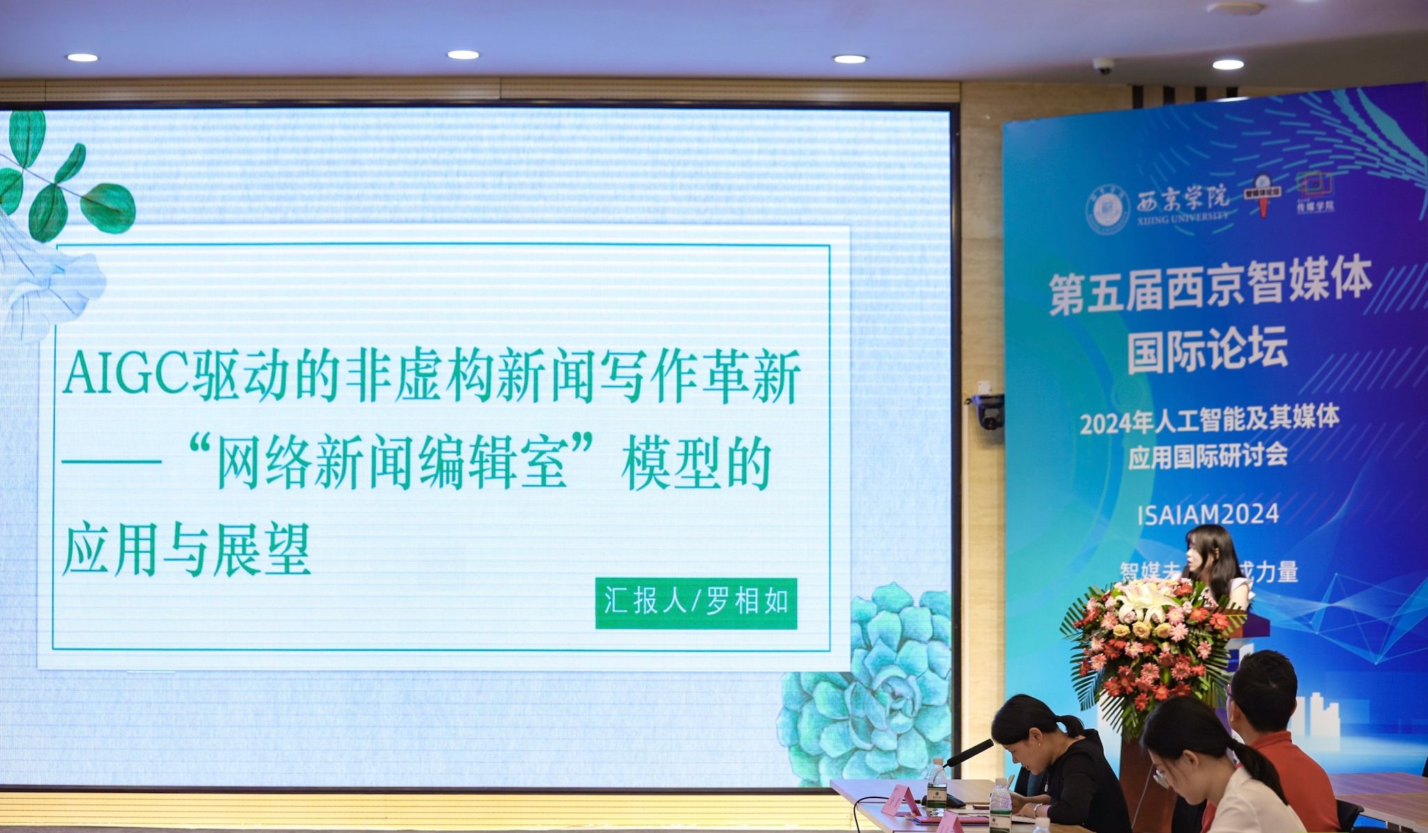 6月22日至23日,2024年“第五届西京智媒体国际论坛暨2024年人工智能及其媒体应用国际研讨会”(ISAIAM2024)在西京学院举办,传媒界共70多位专家学者参会。我院青年教师罗相如受邀参会,其论文《AIGC驱动的非虚构新闻写作革新——“网络新闻编辑室”模型的应用与展望》荣获优秀论文奖,并于23日下午的分论坛上发表了学术报告,获得与会专家的好评。