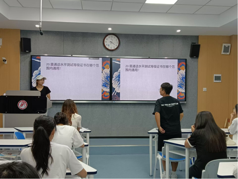 为了大力推广国家通用语言文字的使用,深入贯彻落实推普活动,语言文字社在曹璇璇老师的指导下,于2024年9月18日下午在1205教室开展普通话知识竞赛活动。