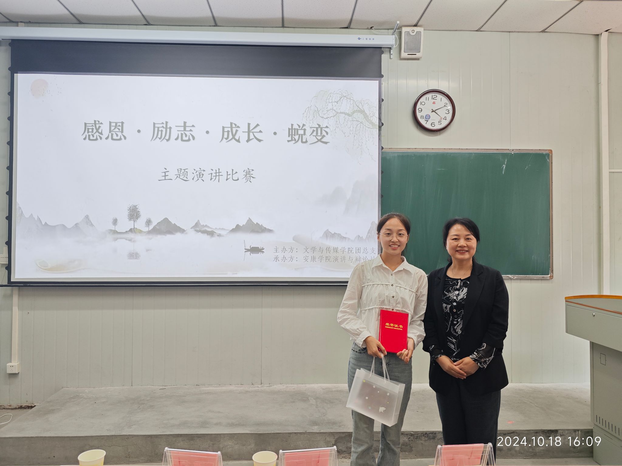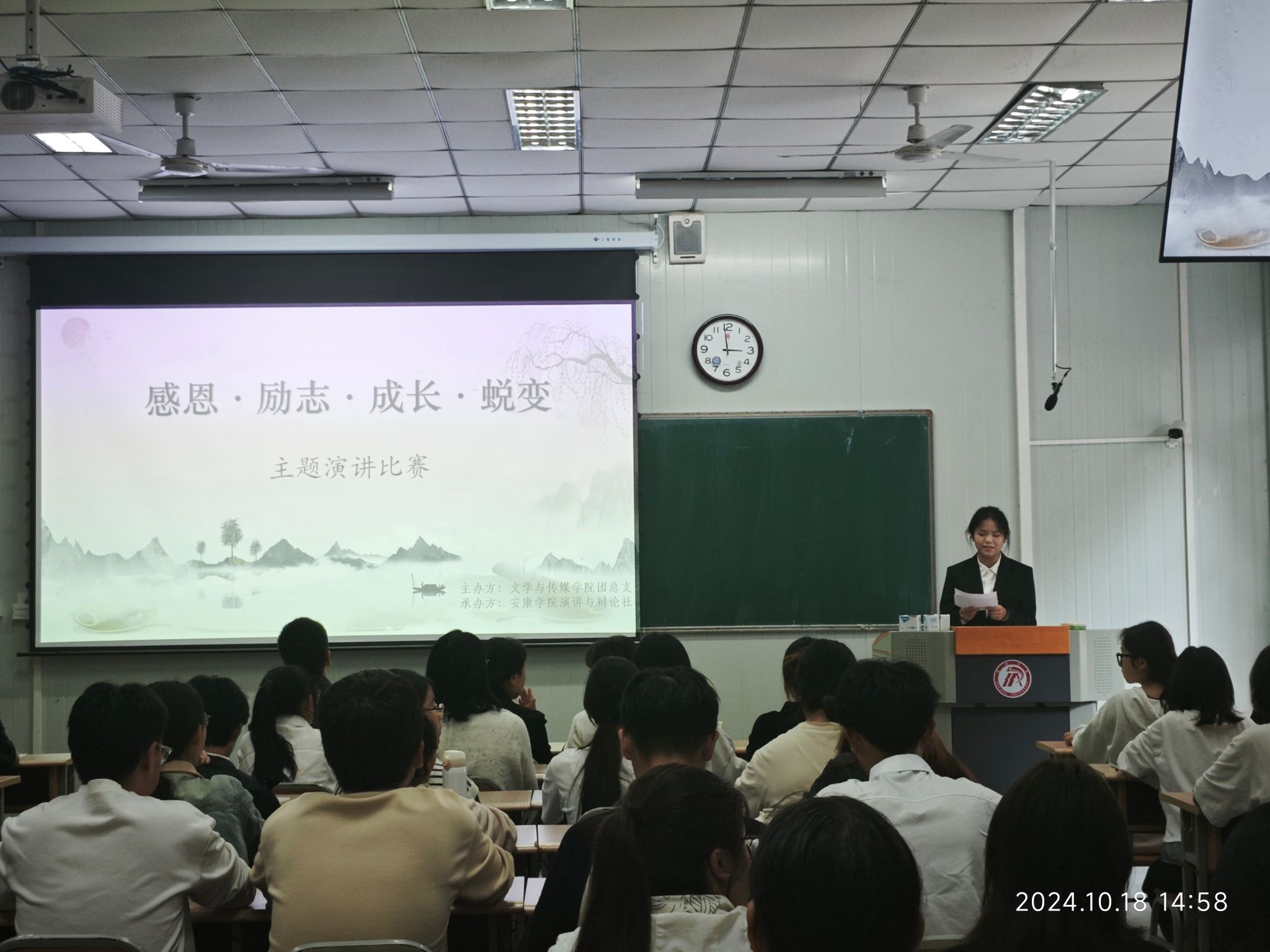 为了充分展示我校大学生的文明素养,引导大学生体悟感恩,培育感恩情怀,做有责任担当的新时代青年,10月18日下午15时,演讲辩论社在江南校区10号楼1017教室举行“感恩·励志·成长·蜕变”主题演讲比赛。澳门网投唯一官网党总支副书记杨海蓉、播音主持社指导老师黄治强、演讲辩论社指导老师余珊担任评委。演讲辩论社王淼同学主持比赛。