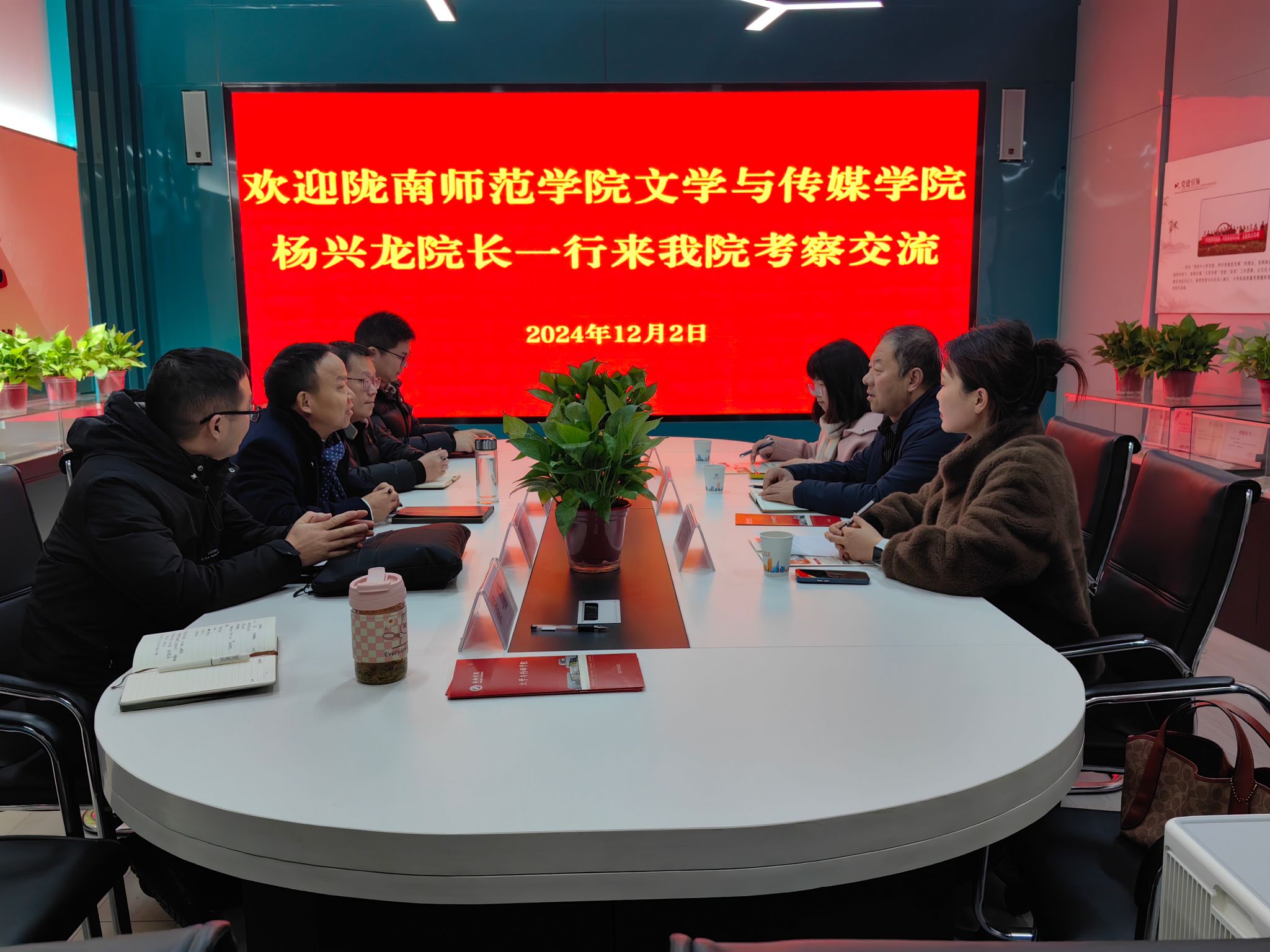12月2日上午,陇南师范学院澳门网投唯一官网杨兴龙院长一行3人来澳门网投考察交流,澳门网投唯一官网院长杨运庚、副院长朱云、秘书学专业负责人胡少山、秘书与新媒体系主任张建涛、党政办主任崔瑜参加交流座谈。
