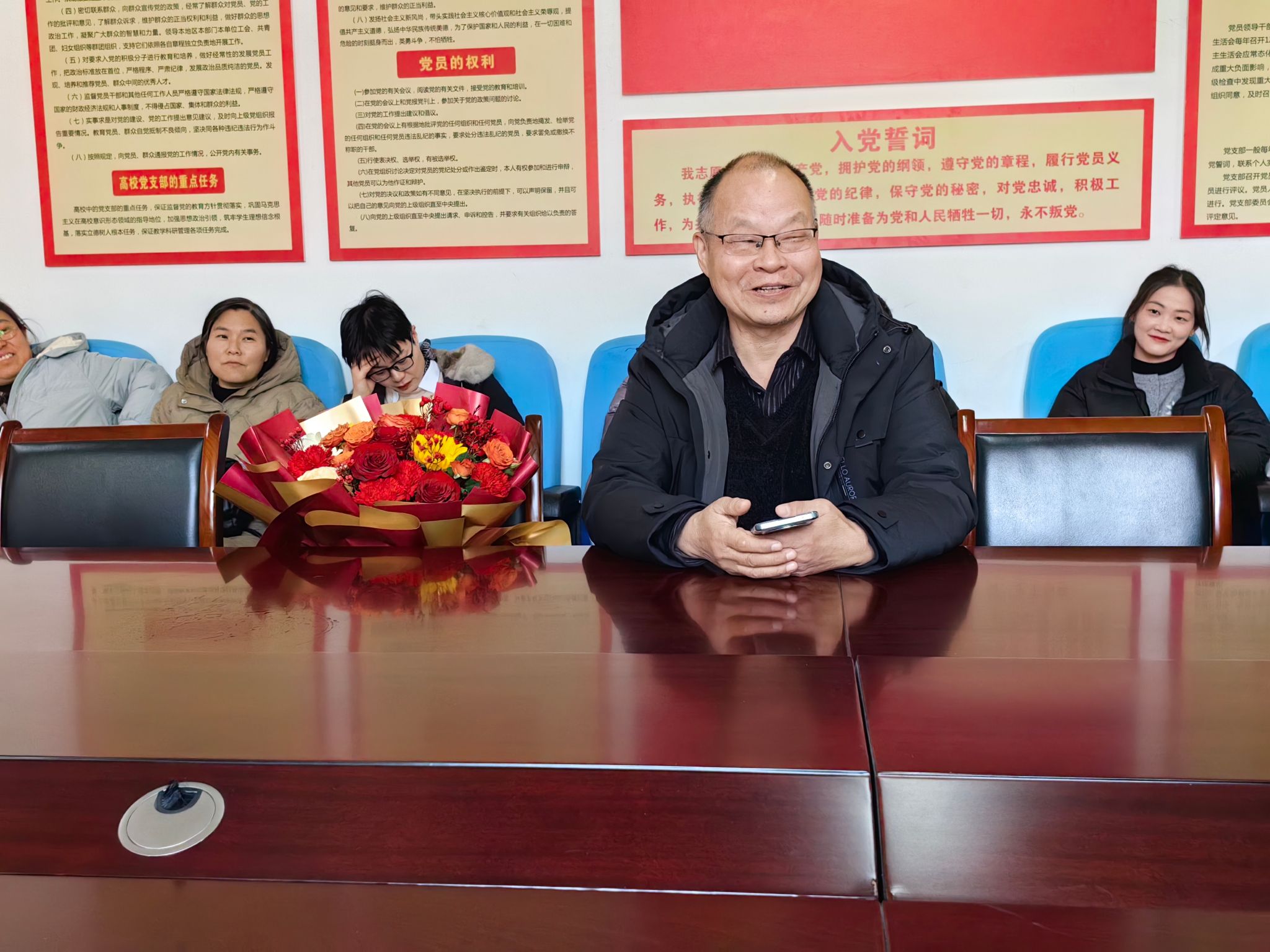 随后,黄治强代表学院工会分会给郑继猛教授送上了祝福的鲜花,郑继猛教授发表了荣休感言。他追忆了早年不断求学和入职澳门网投以来的主要经历,对学校、学院多年以来的关怀和支持表示真诚的感谢,对在各个时期给予他帮助的老师们也分别表达了感谢。郑继猛教授还分享了自己的学术感悟和科研经验,鼓励在职教师要在潜心教书育人的同时结合自己的专业方向和学院发展所需加强科研工作。与会教师也纷纷畅谈与郑继猛教授在一起的美好时刻,并对其开启退休新生活送上了美好的祝福。