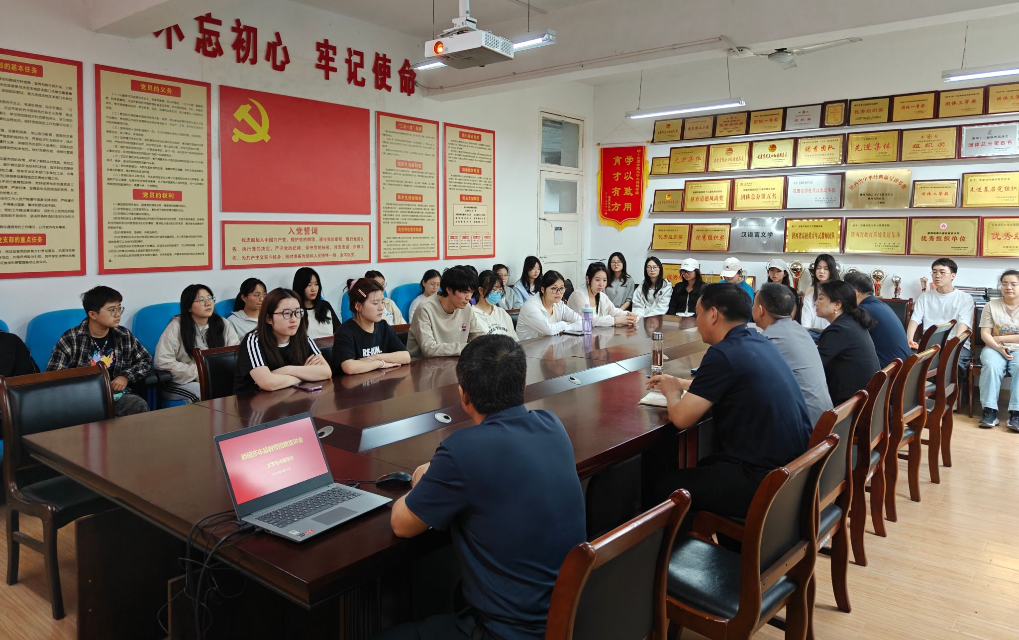 宣讲会结束后,同学们就自己关心的问题向老师们请教,并表示会全力以赴准备即将到来的招聘考试,用知识和爱心为西部教育事业贡献一份力量,在祖国边最需要的地方书写属于自己的教育篇章!
