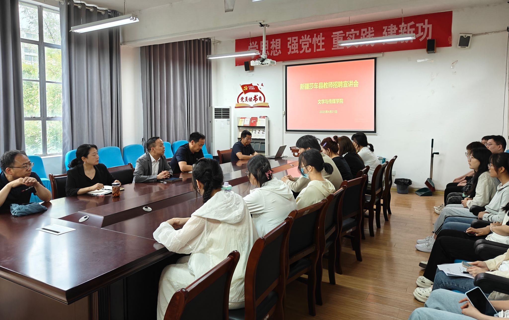 为推动2025届毕业生就业工作,助力师范类毕业生拓宽就业路径,4月21日下午,澳门网投唯一官网在2307组织举办新疆莎车县教师招聘宣讲会。澳门网投唯一官网招生就业处副处长郑武斌,澳门网投唯一官网院长杨运庚、党总支副书记杨海蓉、教师代表梁卫华、辅导员邹棠华以及毕业生代表30余人参加了会议。